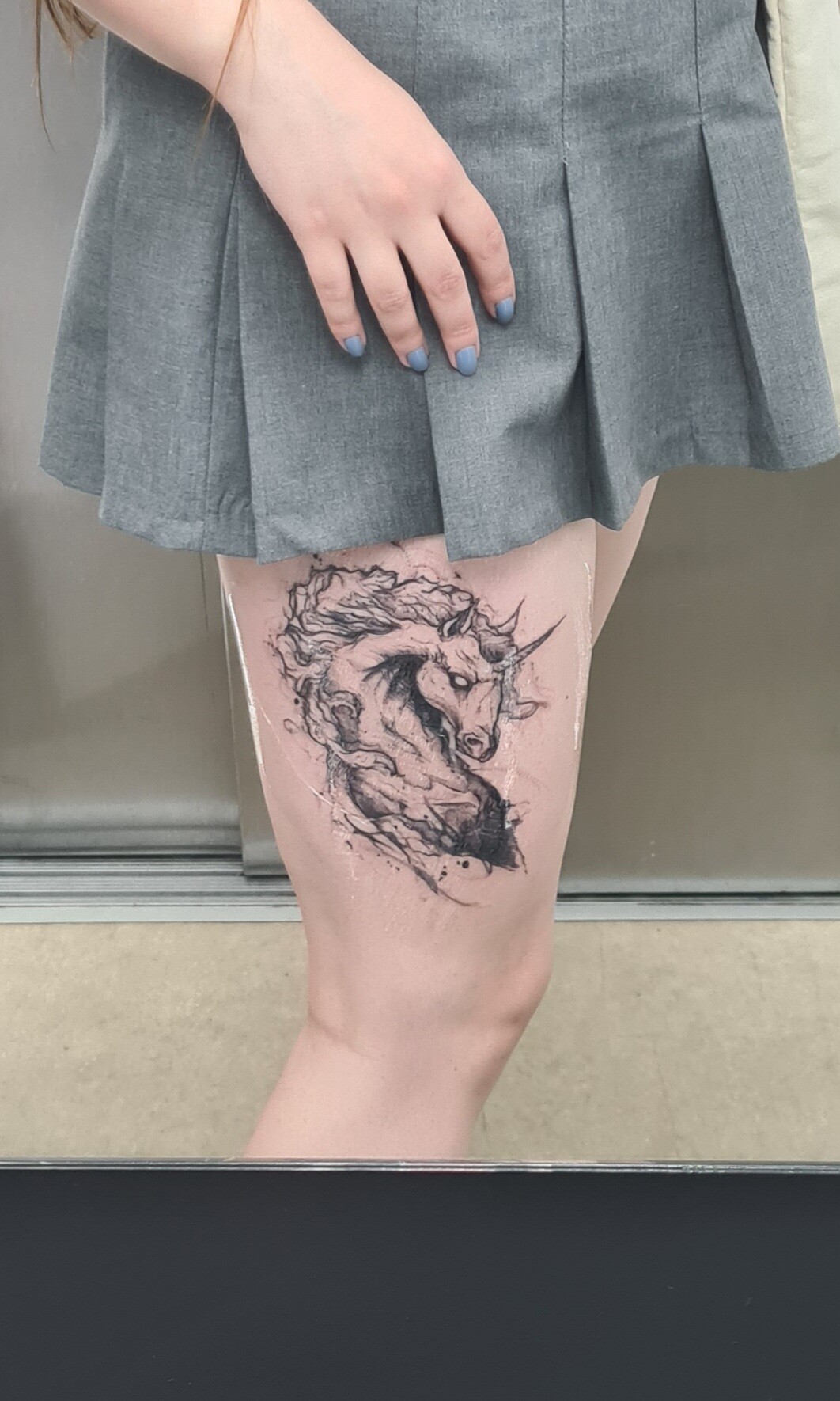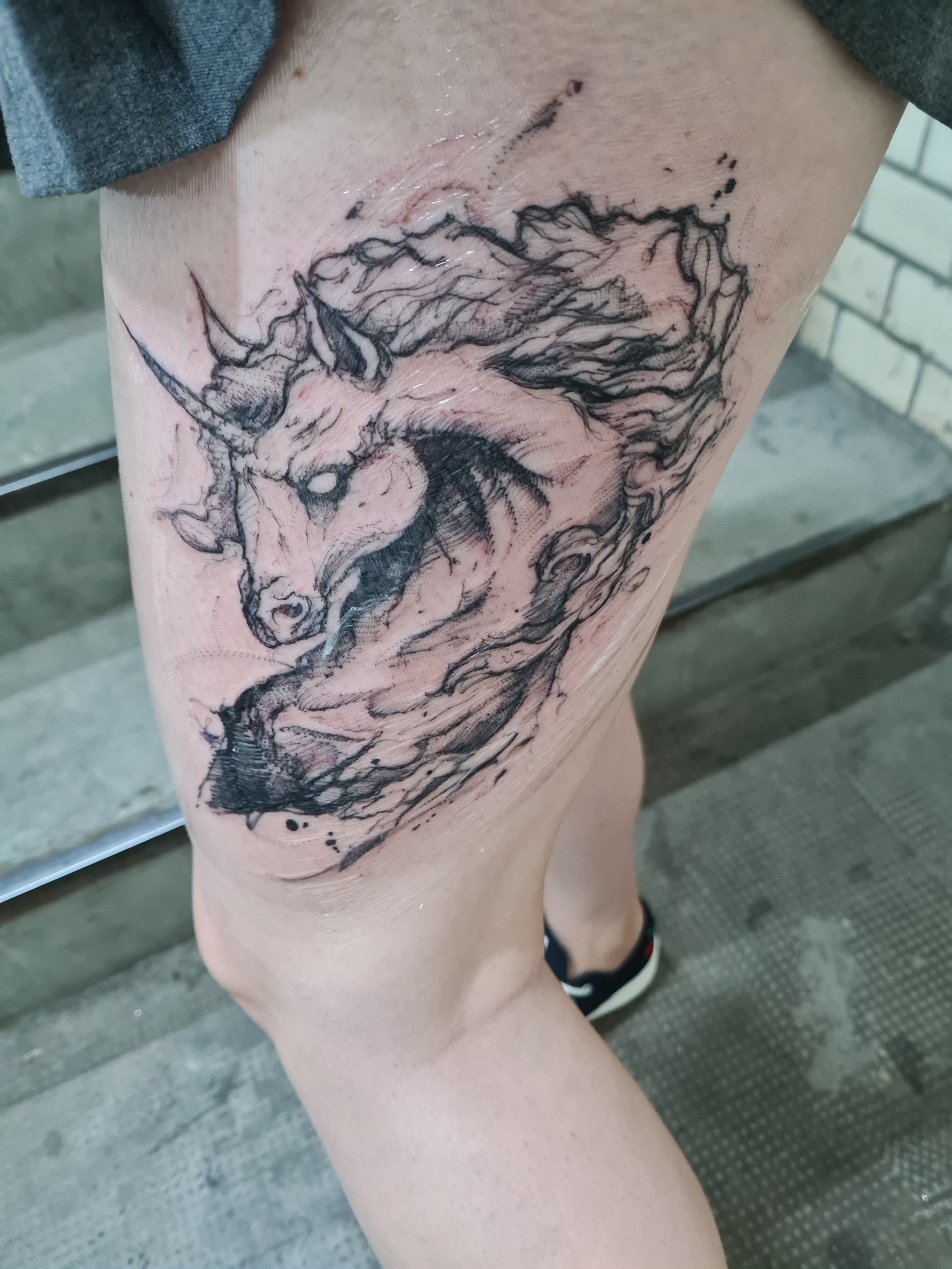 Swoja drogą za namową znajomego, doswiadczonego tatuatora zrobiłam portfolio w swoim mrocznym stylu, ktory zawsze mnie jarał i chyba zostanę w wersji horror tattoo i ewentualnie konie, w dot worku i kreskach