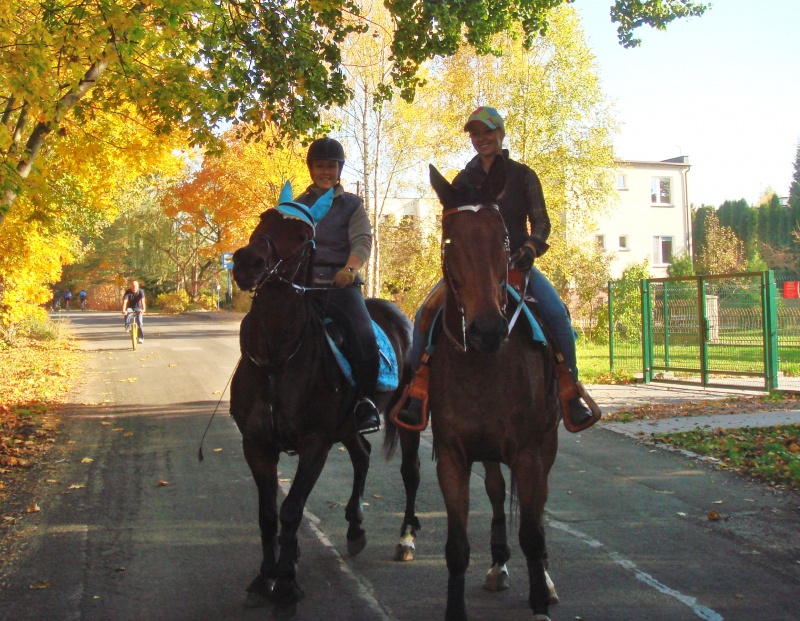 Livia podziwiam cię 💘 osobiście nie lubię wyjeżdżać sama w teren, gdy druga klacz zostaje na miejscu. Ostatecznie jadę na starszej Olce, a jej 6-letnia córka towarzyszy nam na luzie. Wyczynia przy tym istne cuda, wariackie galopady, brykanda, ale przynajmniej nie histereyzuje, a matka pozostaje spokojna. Wybieram bezpieczne tereny, gdzie nie ma ludzi i psów, a droga jest odgrodzone od lasu siatką, a od pól rowami wodnymi i rzeką.