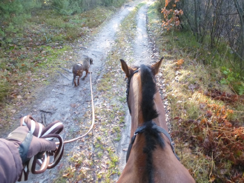 Mam uszowe foto jakości komórkowej z ubiegłotygodniowego terenu 😉. Na zdjęciu jest pies, który od jakiegoś czasu chodzi z nami w tereny. Nie pomyślałabym,że tereny w towarzystwie psa mogą być tak fajne. Wczoraj pojechałam bez niego i było mi jakoś tak...dziwnie 😀. Brakowało mi czegoś i chyba nawet koniowi było jakoś smutniej 😀