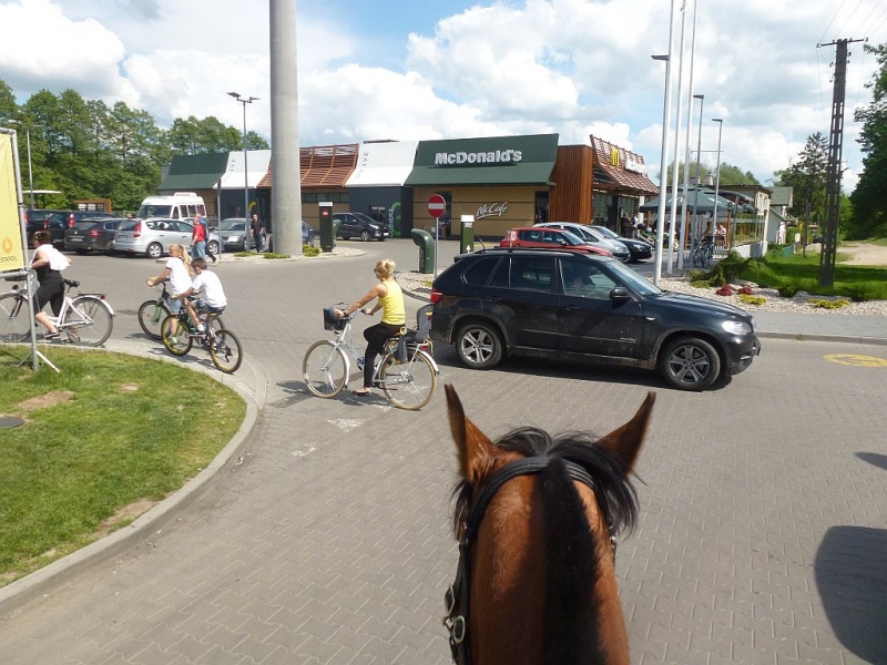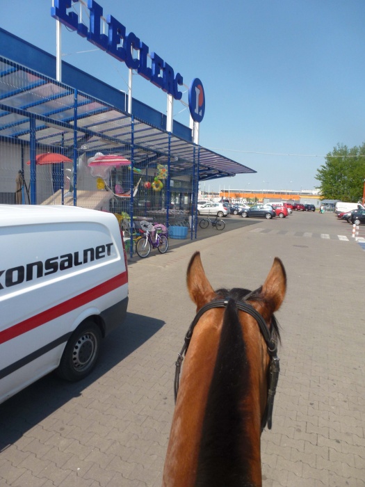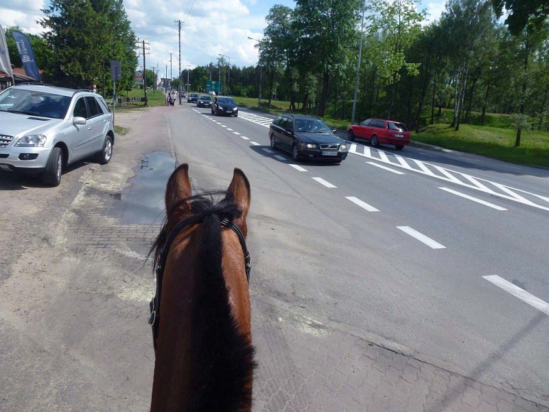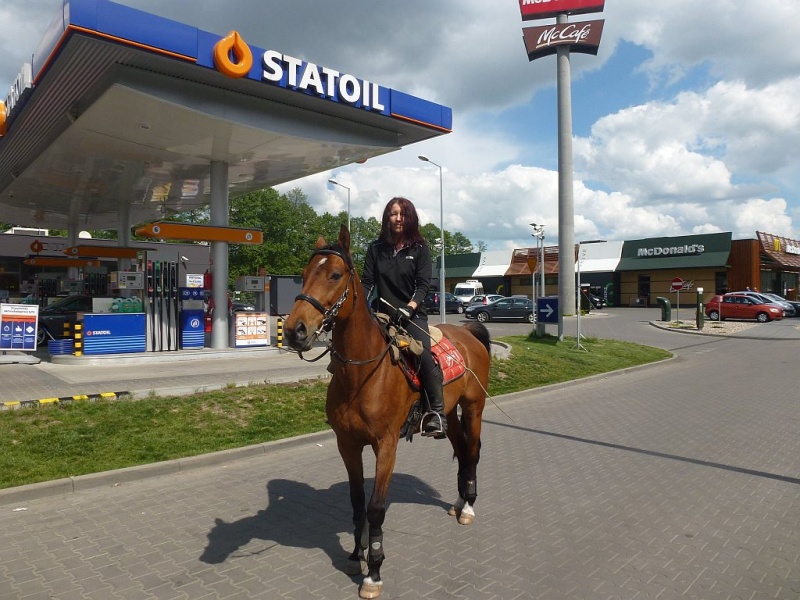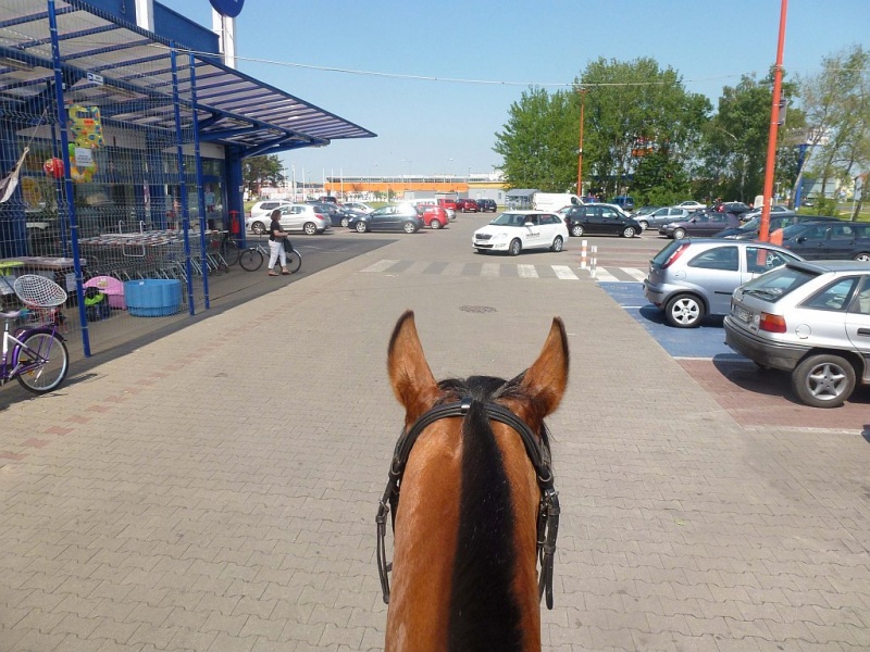 I wiecie przed czym mój koń panikował? Nie przed strachami miejskimi!! NIE! Panikował przed taką kratką w asfalcie do której spływa woda. Taką samą kratkę ma w stajni na myjce i zawsze jak używam myjki, woda leci do tej kratki i hałasuje. Passat strasznie się boi tego hałasu spływającej wody i tej kratki. I stoi na myjce tak, że wciska się w ścianę na ile tylko może, aby być jak najdalej od tej kratki!