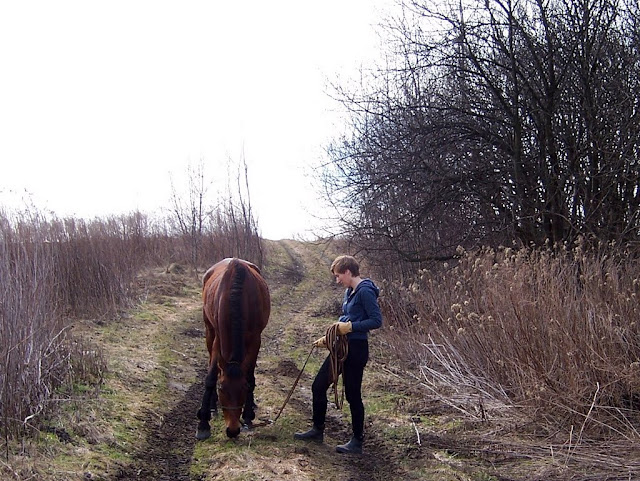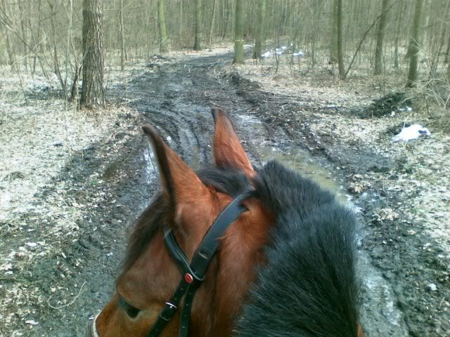 Ja też skorzystałam z wiosny, przysięgam- koń mi się uśmiechał z radochy! 😀 Mimo, że na zmianę śnieg z lodem, jeziora bądź kałuże i błoto błoto to dało radę znaleźć i suchsze miejsca.