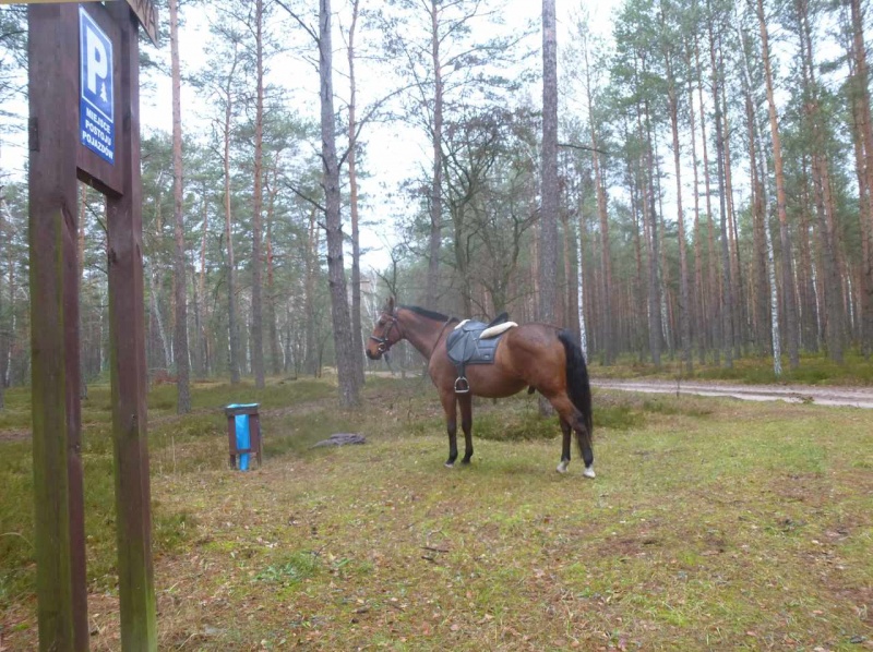 Takie zdjęcie z początku września - przed bramą wjazdową na boisko polo. Dla koni zrobiona jest obok zawsze otwarta bramka wjazdowa i sobie można obrzeżami te boisko objechać wokół bądź kontynuować jazdę kolejną ścieżką za boiskiem.