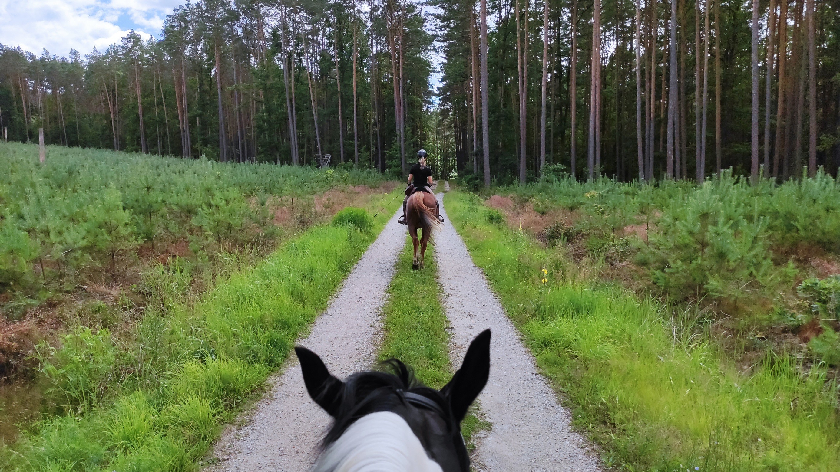 U Nas na szczęście w lesie niewiele ludzi, kilka lat temu problemem była młodzież na crossach i quadach, wyraźnie nie czaili że koń może się spłoszyć a i te ich maszyny są na tyle głośne że po prostu nie słyszeli Nas na koniach, bywało że wyskakiwali zza zakrętu ale teraz pełna kultura nawet z nimi, wyłączają wręcz silniki, chwilę poczekają aż przejedziemy, zawsze Dzień dobry z uśmiechem, jeżdżą już tylko po kilku drogach nie po całym lesie.