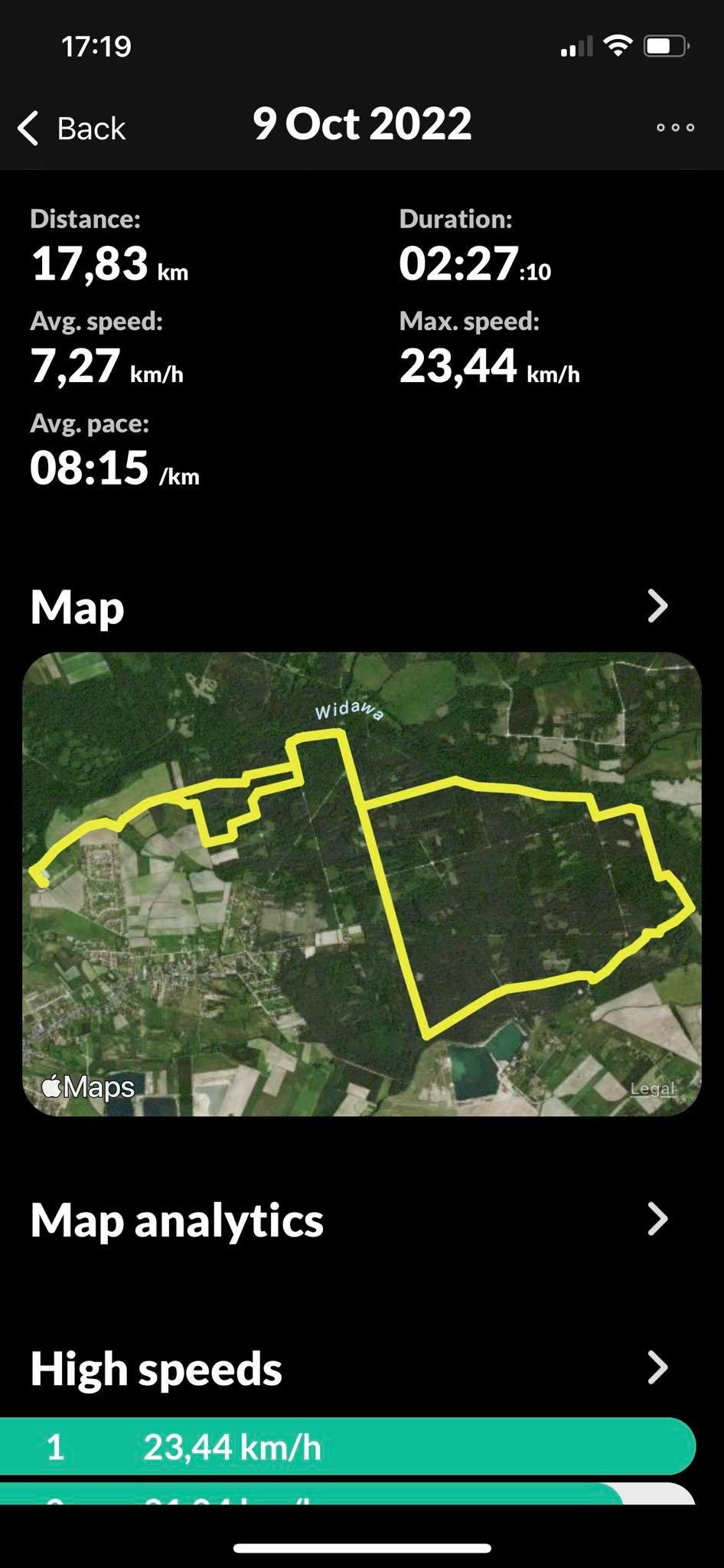 Pod Wrocławiem jesień lekko opóźniona, w lesie nadal przeważa zieleń ale i tak jest pięknie. Dystans ładny wpadł bo prawie 18km także wracamy powoli do dłuższych terenów. Co by nie było, moja kobyła miała takiego kopa, że z raz tyle by spokojnie jeszcze zrobiła 😅