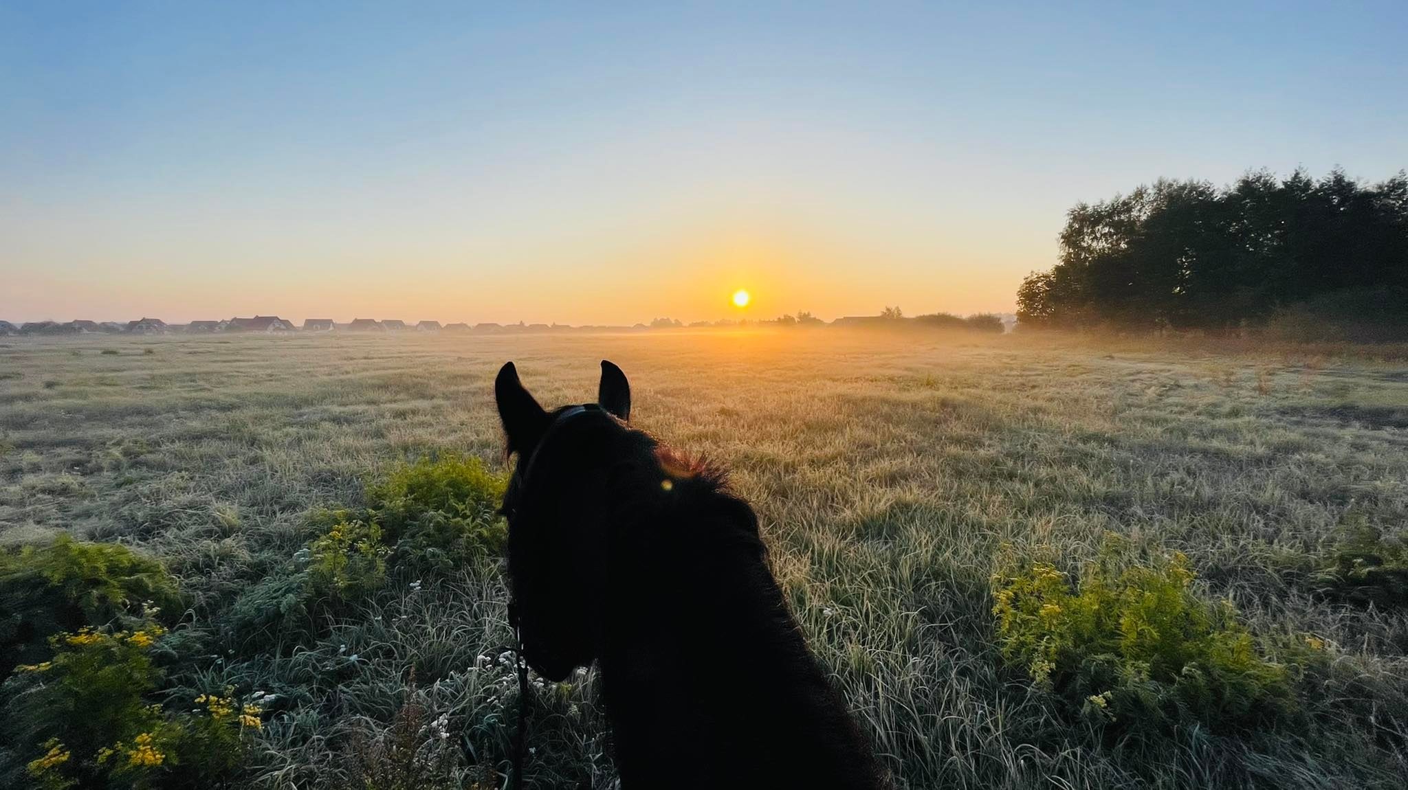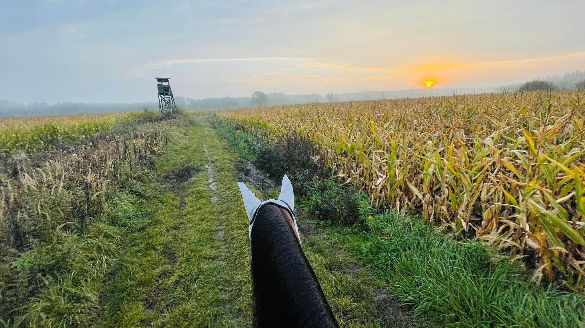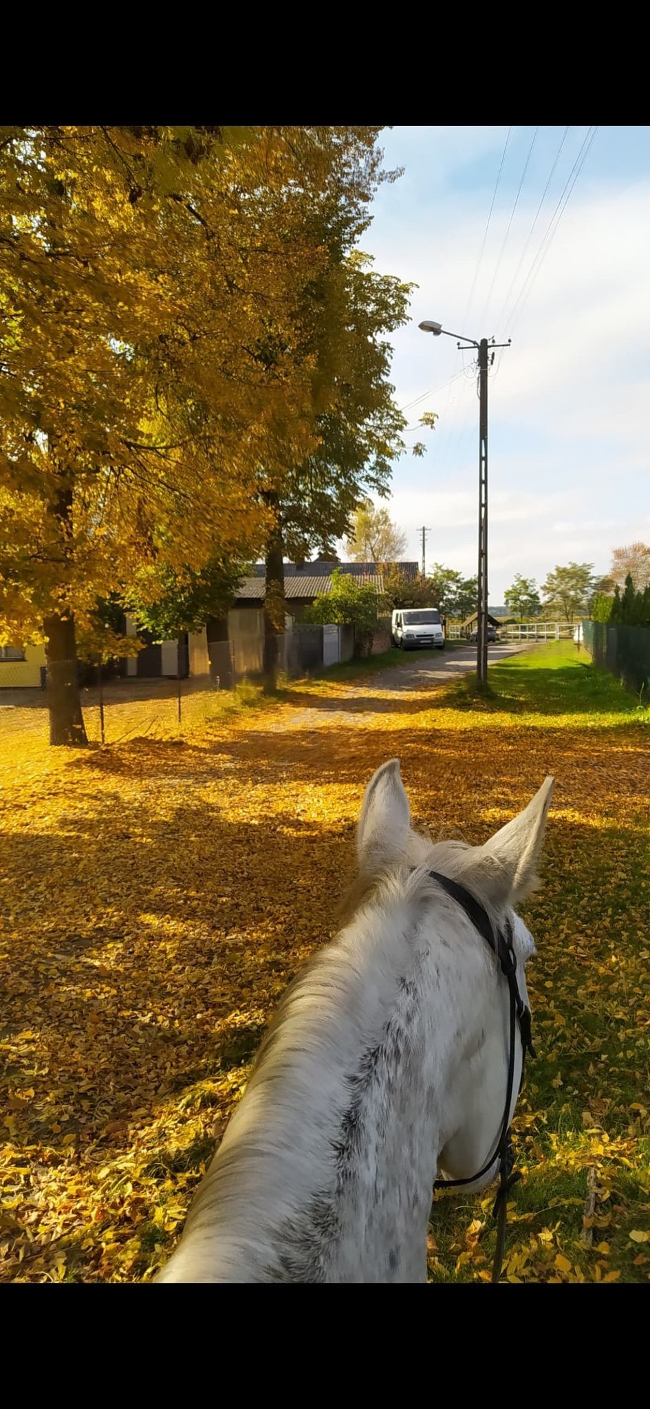 No właśnie 🙂 Okazuje się, że konie całkiem lubią takie tereny i zwiedzanie okolicy. Mój osiodłany i puszczony luzem (z jeźdźcem oczywiście) idzie dziarskim krokiem sam w stronę bramy i z ciekawością eksploruje okolicę. Widzę jaką ma przyjemność z takiej wycieczki i wcale nie spieszy się, żeby najkrótszą drogą wracać do domu.