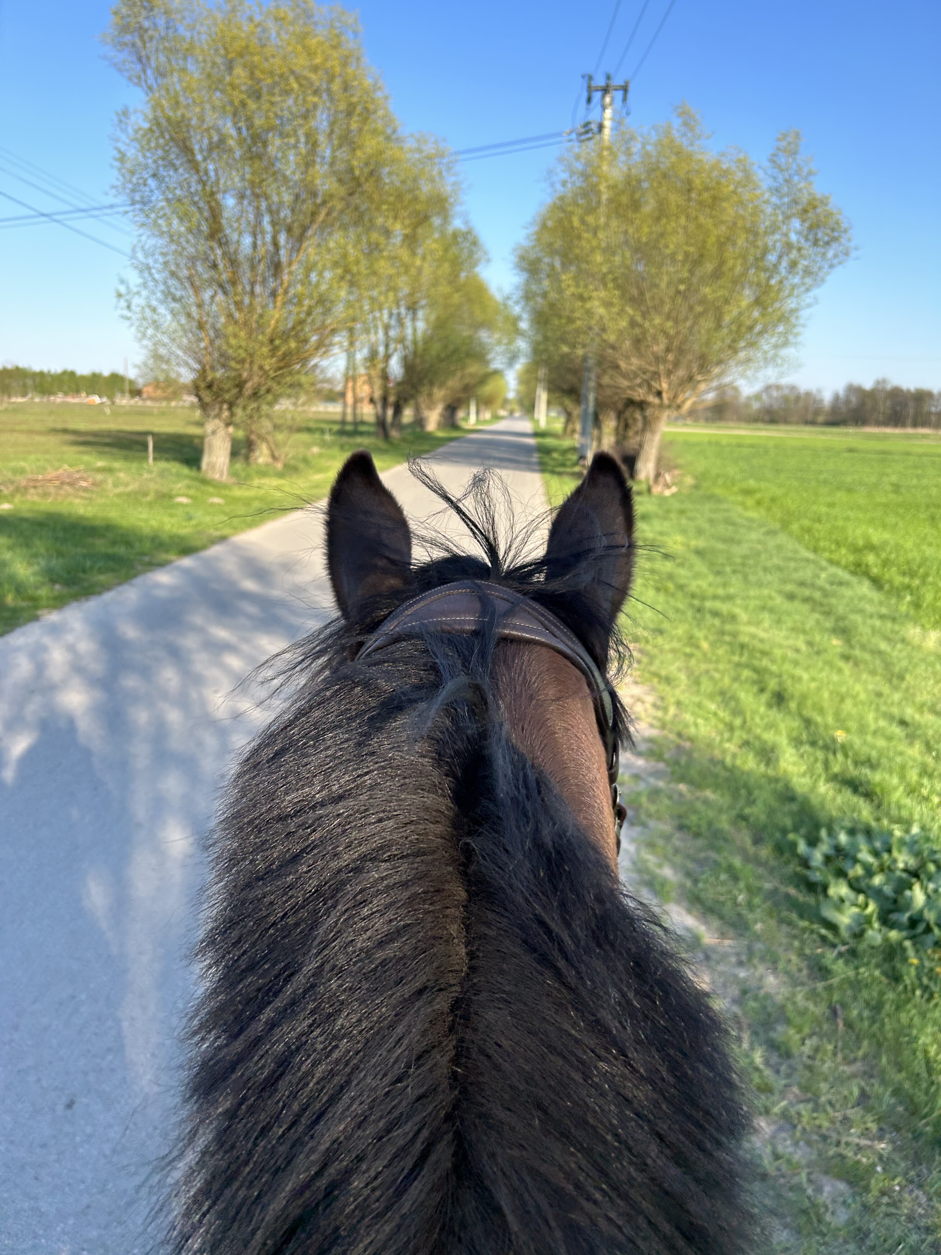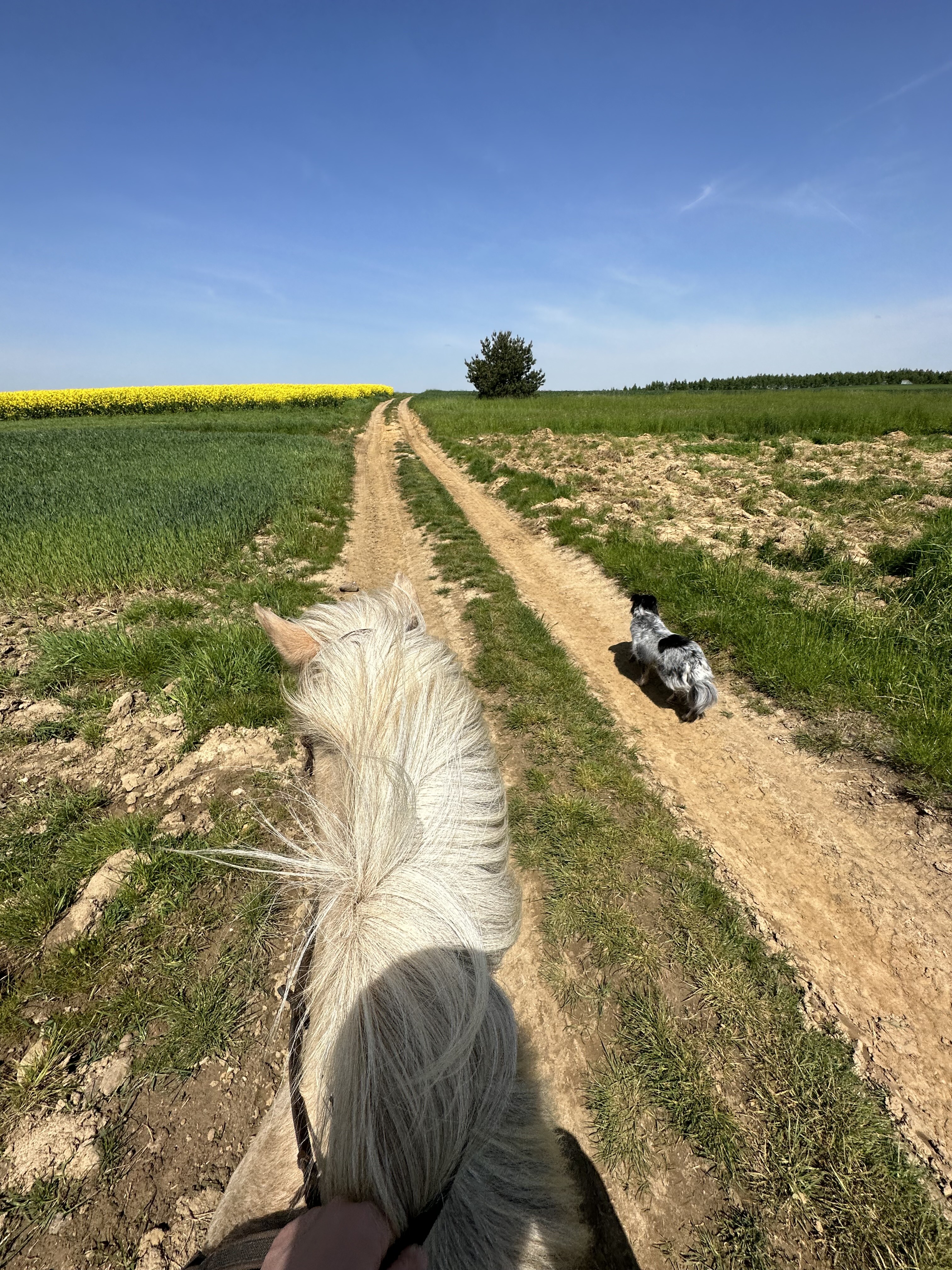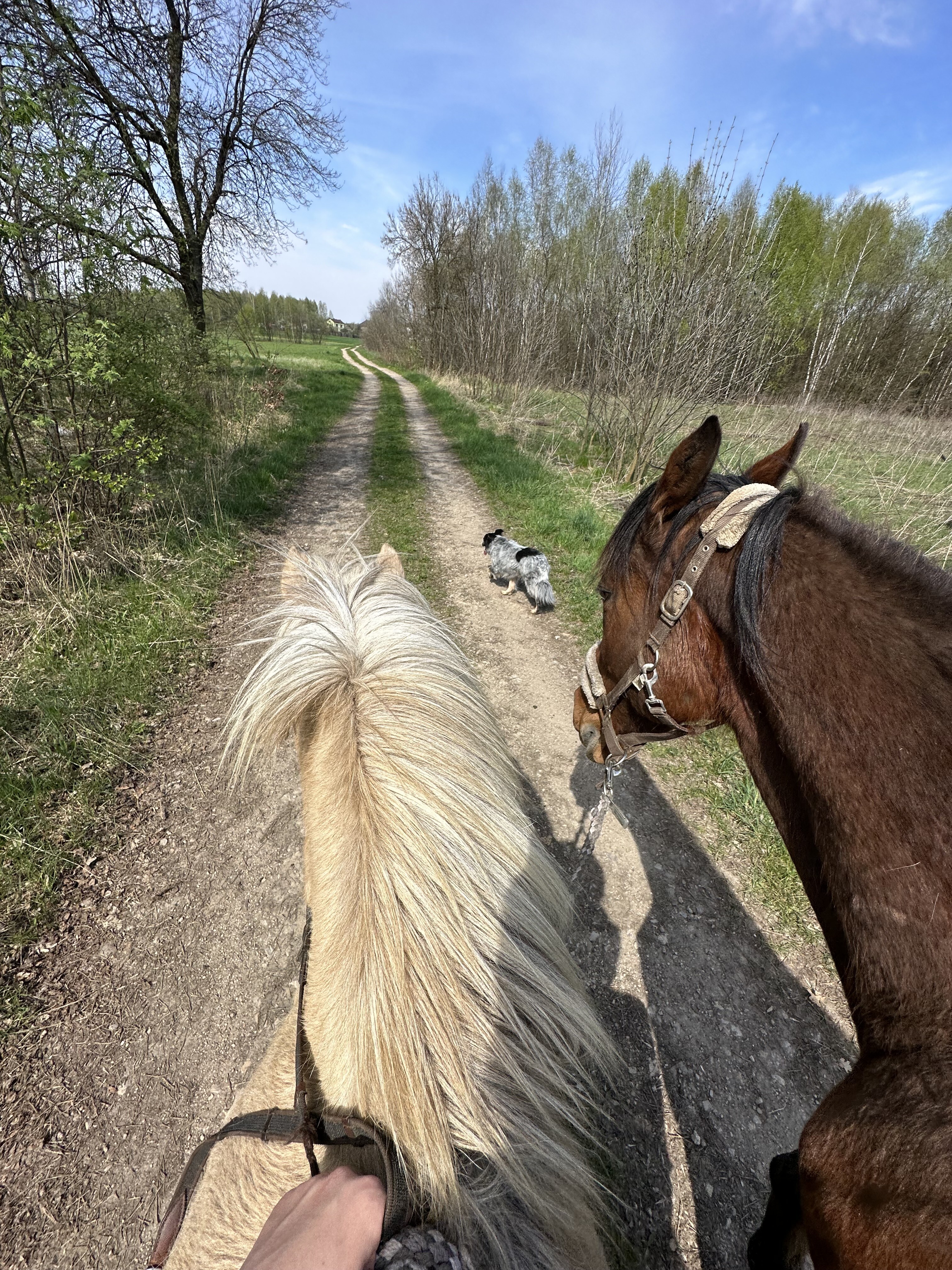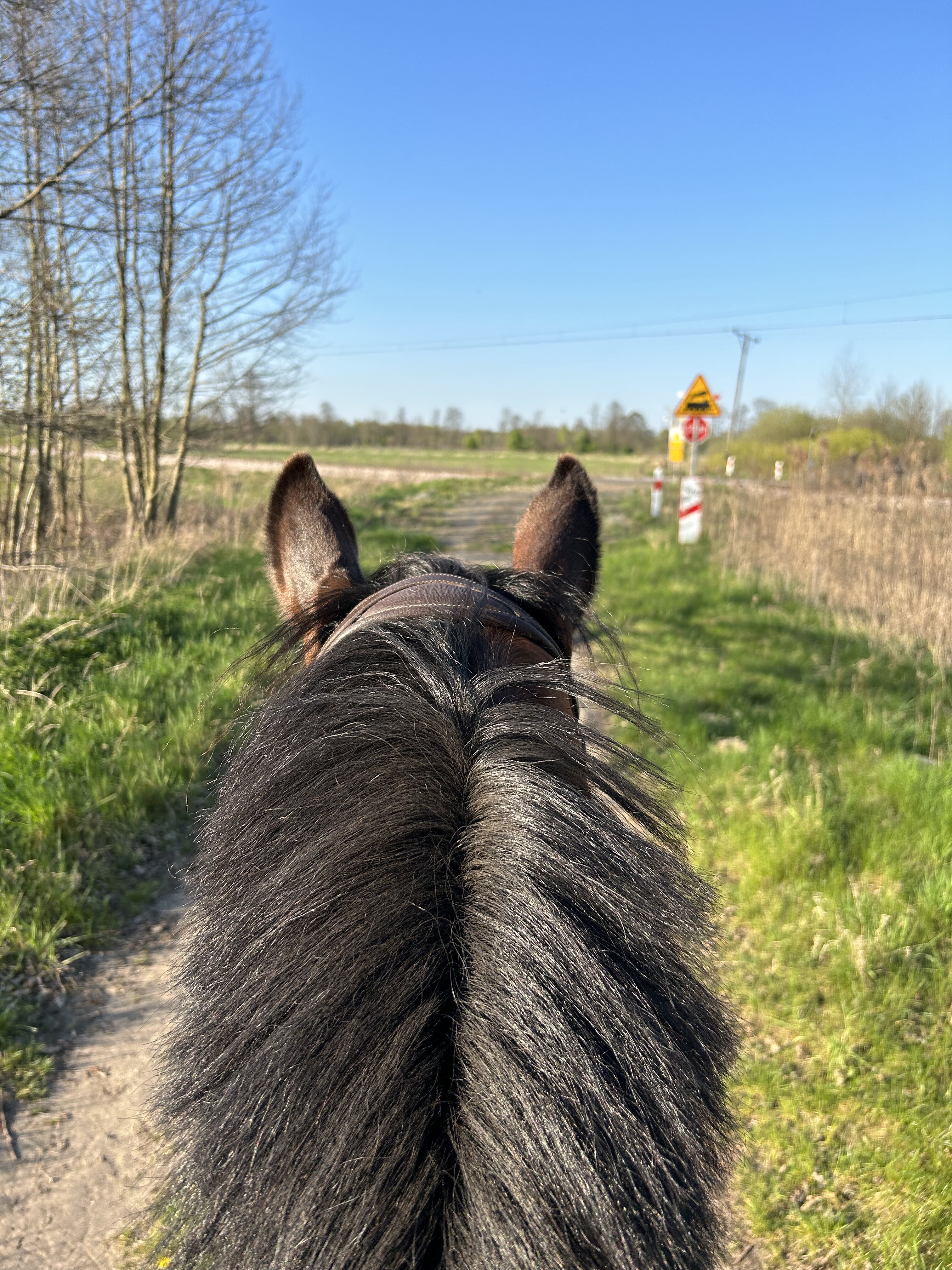 Najbardziej dumna jestem z przejechanego przejazdu kolejowego - przeszedł bez zawahania, a podczas spacerów z innymi końmi musiałam zsiadać i przeprowadzać dziada w ręce, bo żaden nie chciał przejść 😋