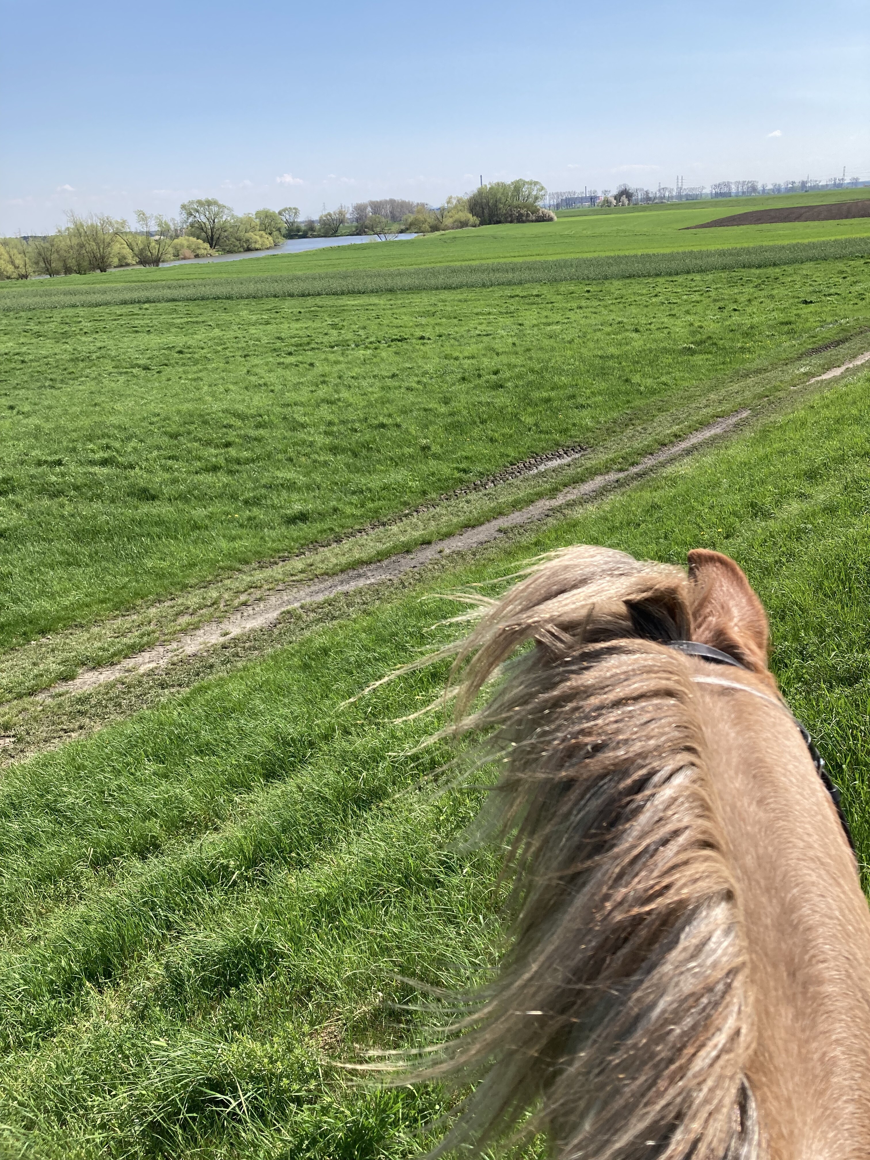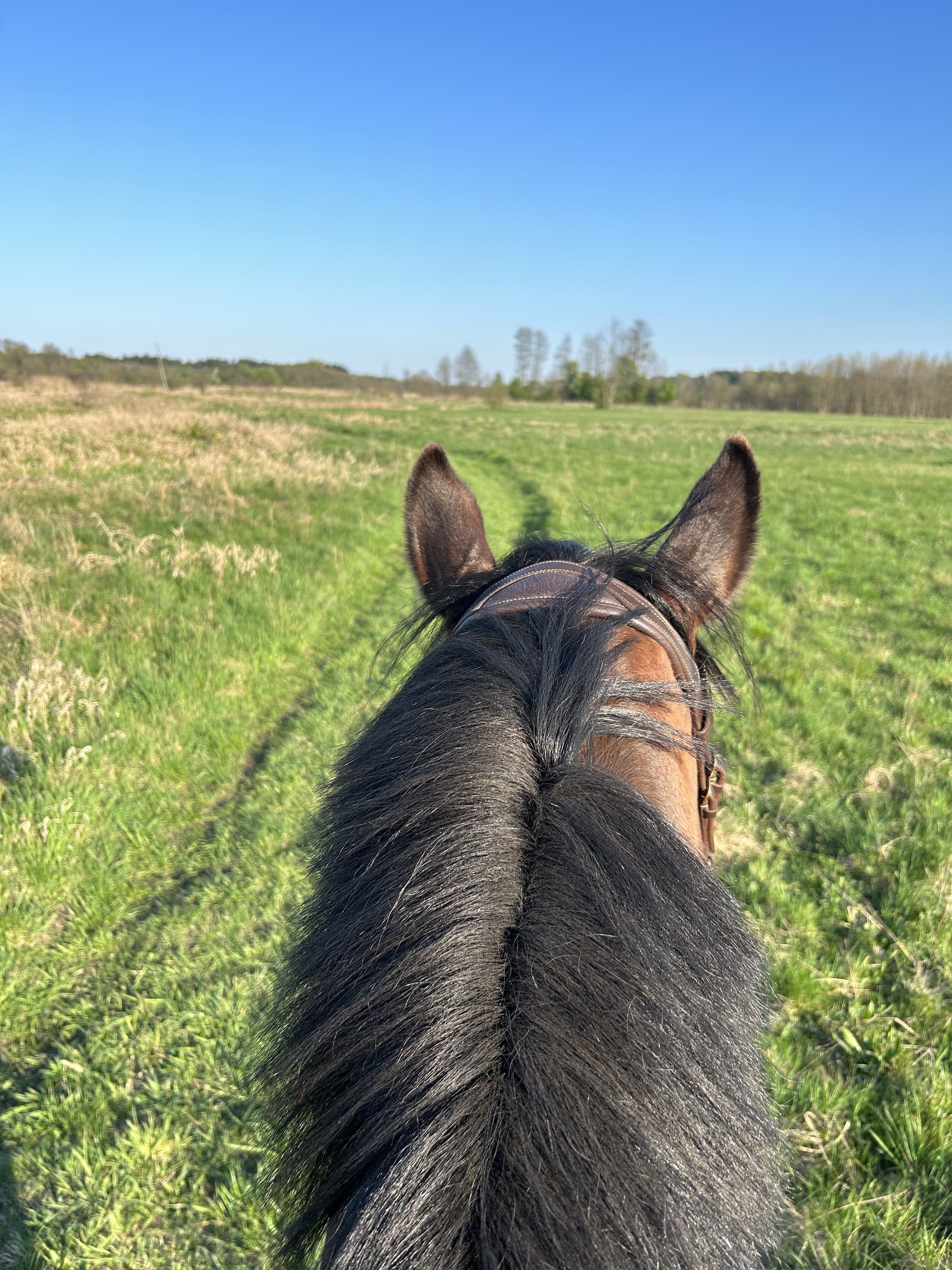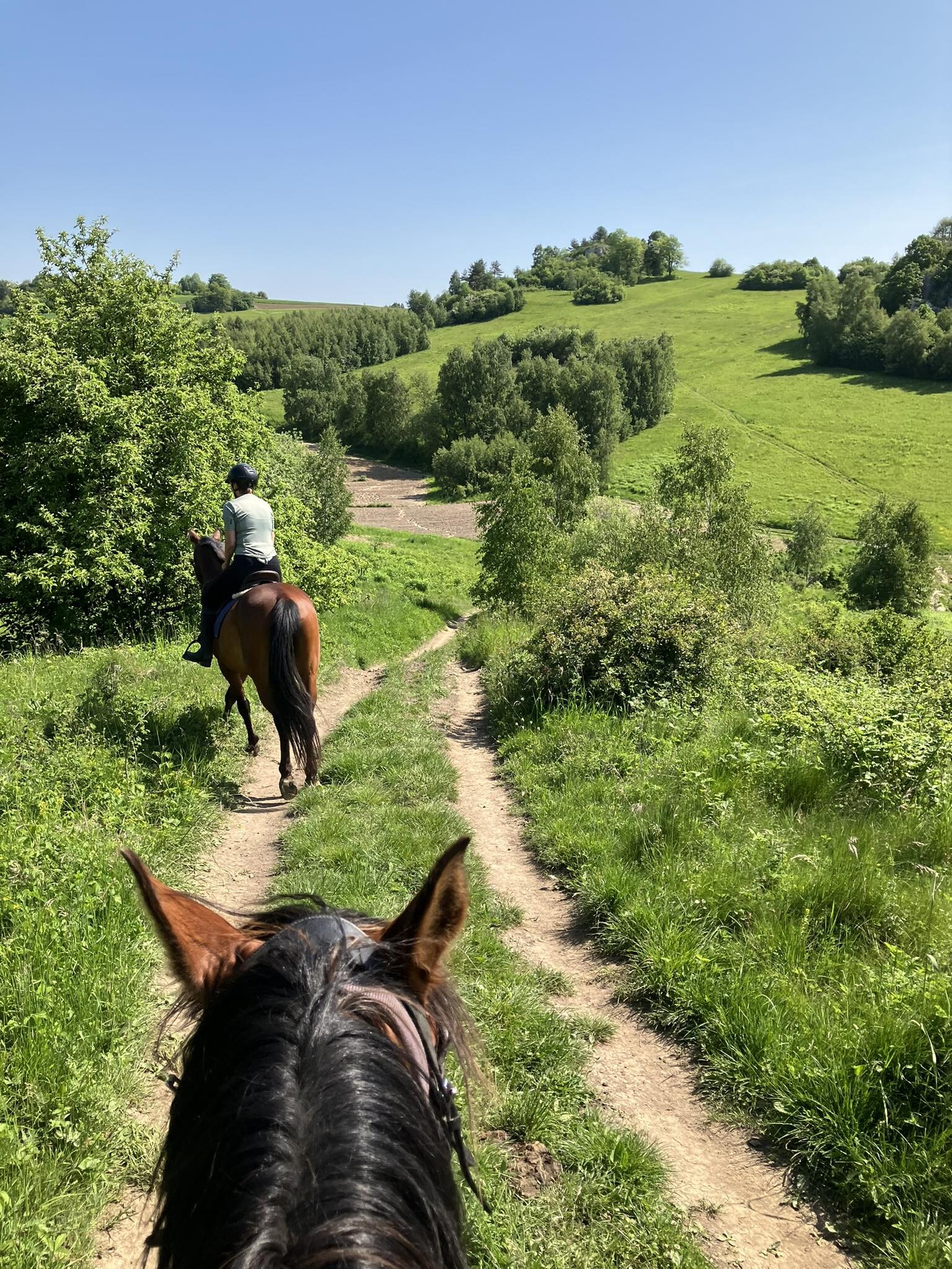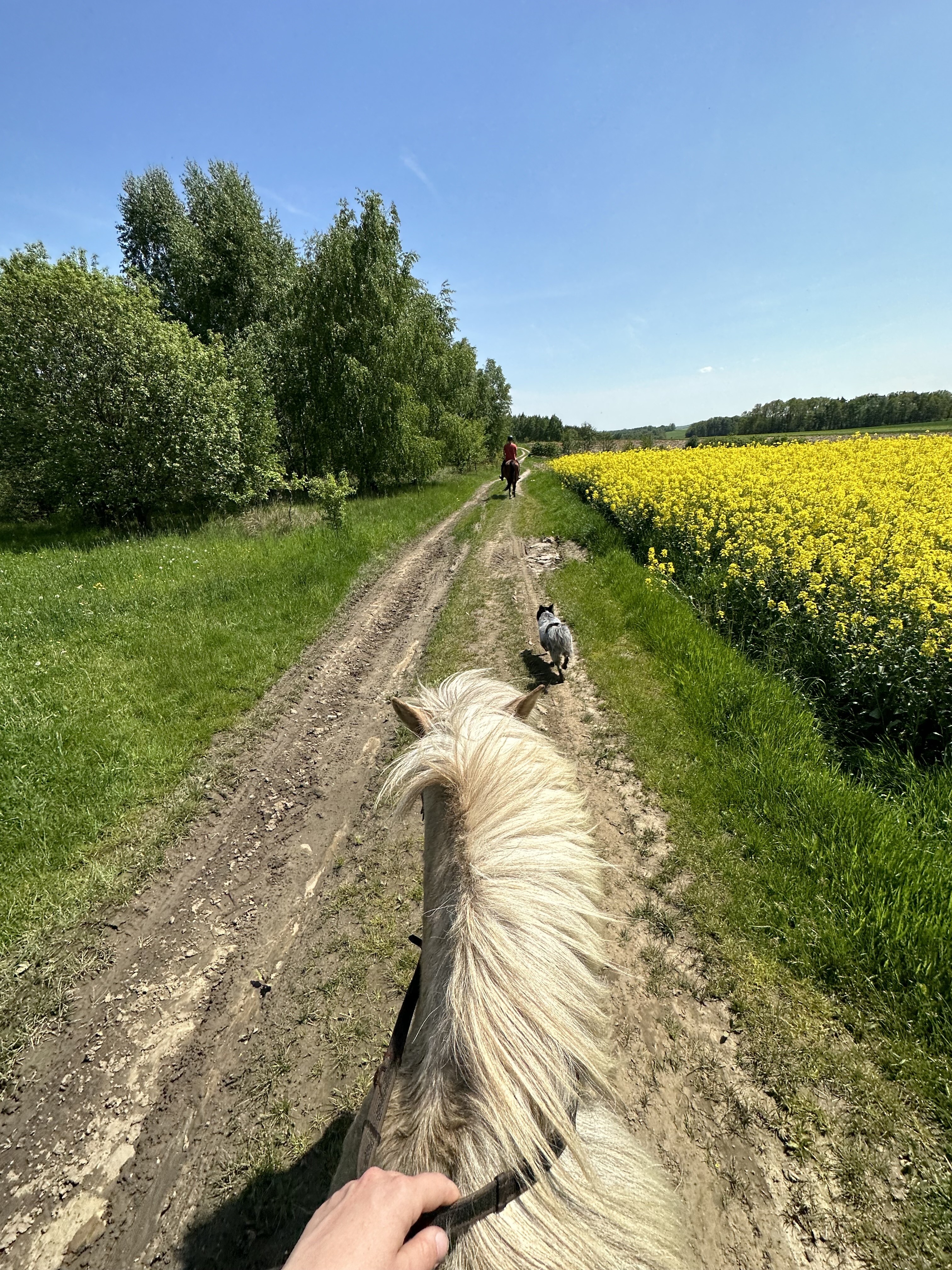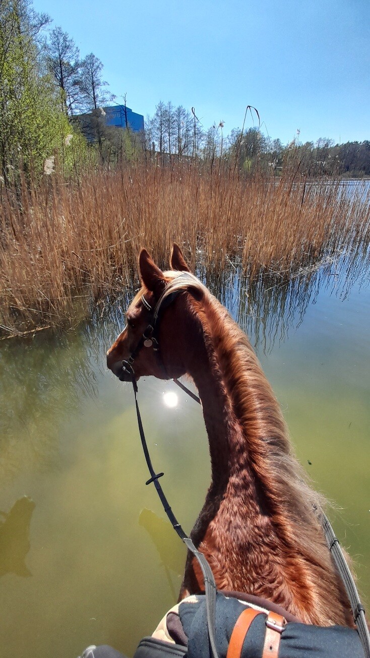 Najbardziej dumna jestem z przejechanego przejazdu kolejowego - przeszedł bez zawahania, a podczas spacerów z innymi końmi musiałam zsiadać i przeprowadzać dziada w ręce, bo żaden nie chciał przejść 😋