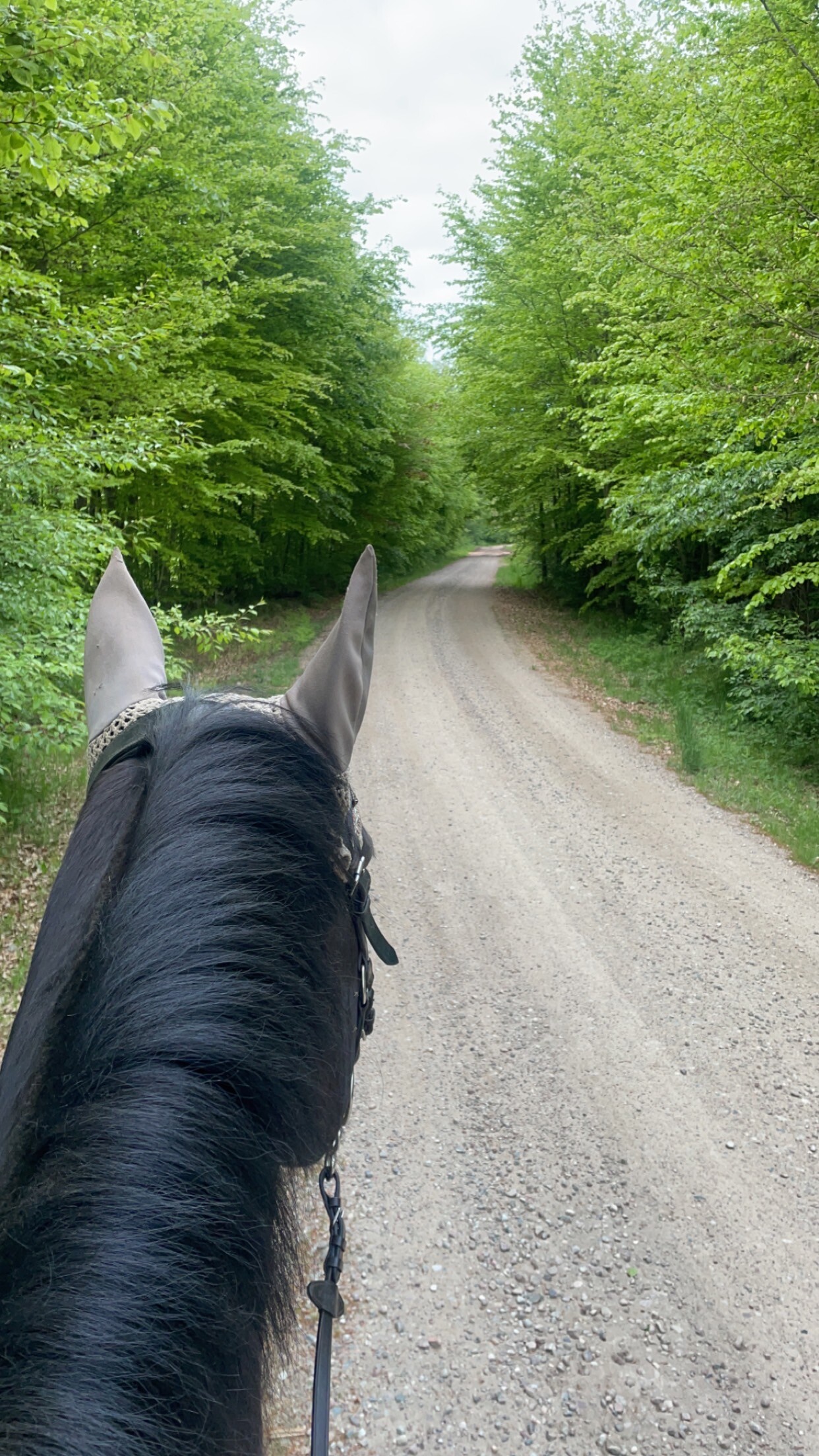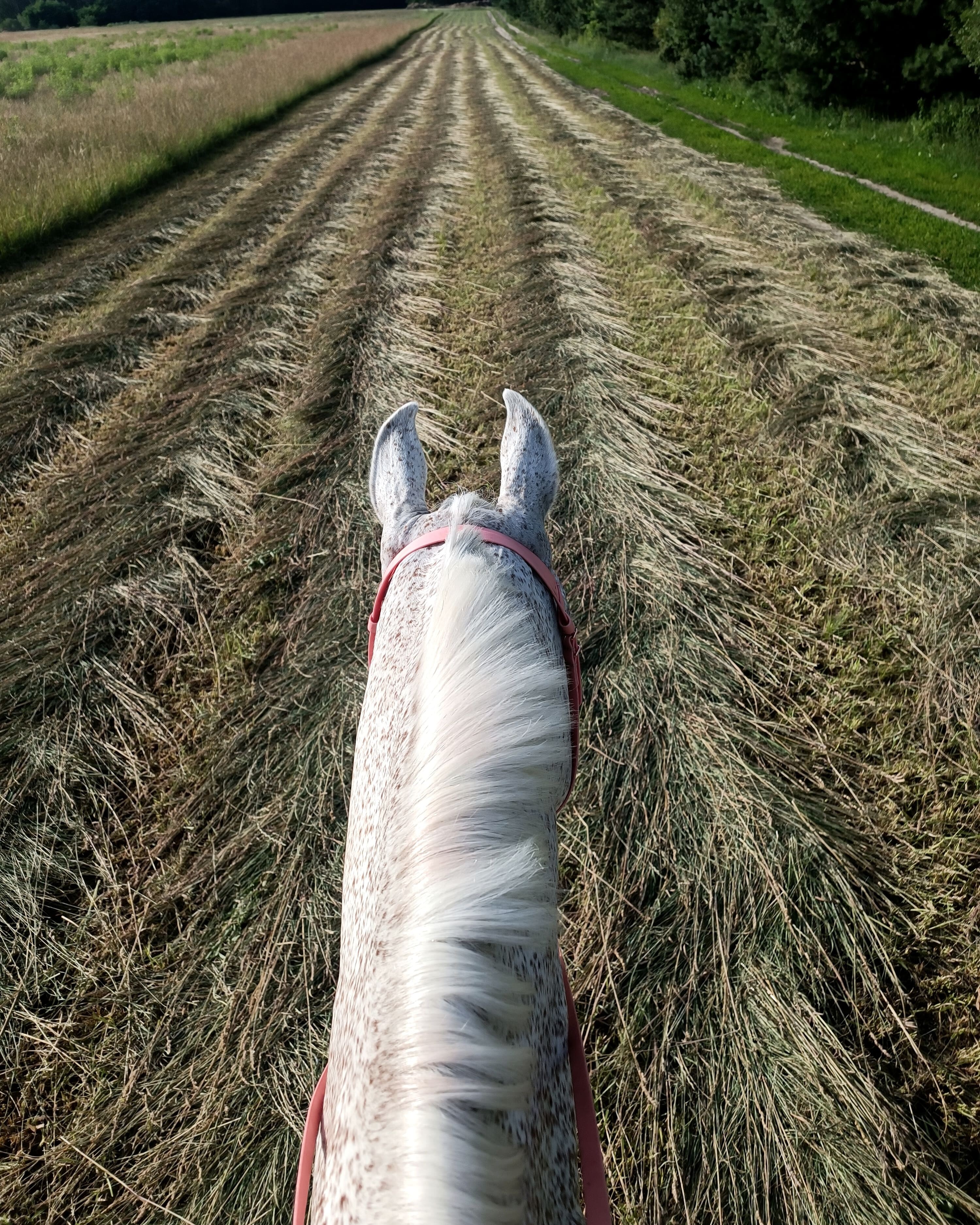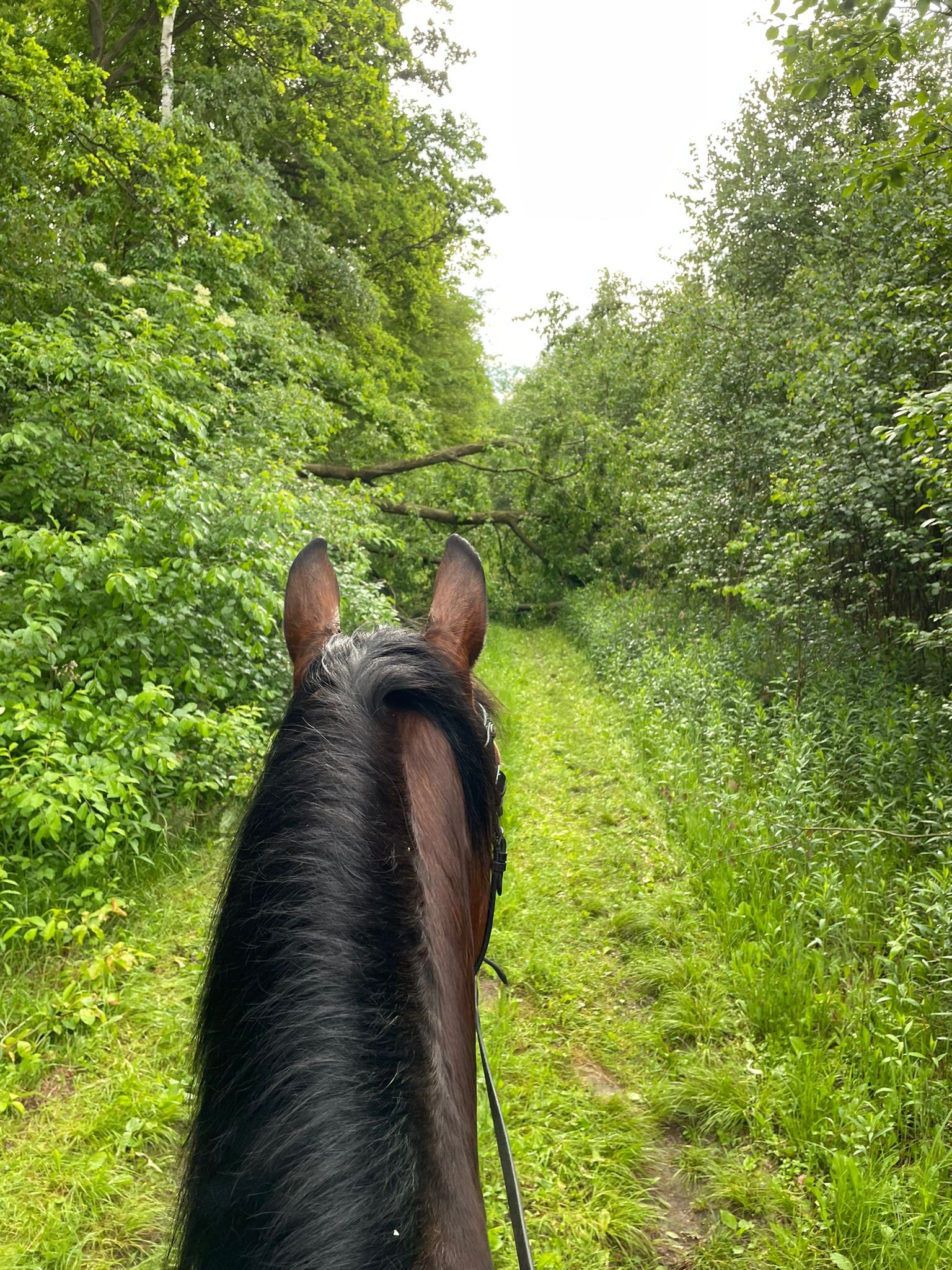 Teren na koniu, na którego dwa miesiące temu nie dało się wsiąść ♡ dumna z niej jestem niesamowicie, zwłaszcza że sama wyszła na czołową i cały teren przeszła spokojnie, na całkowicie luźnej wodzy.