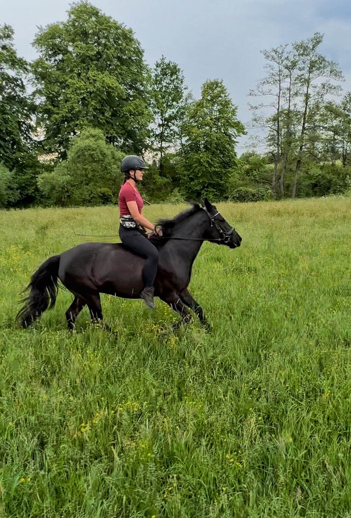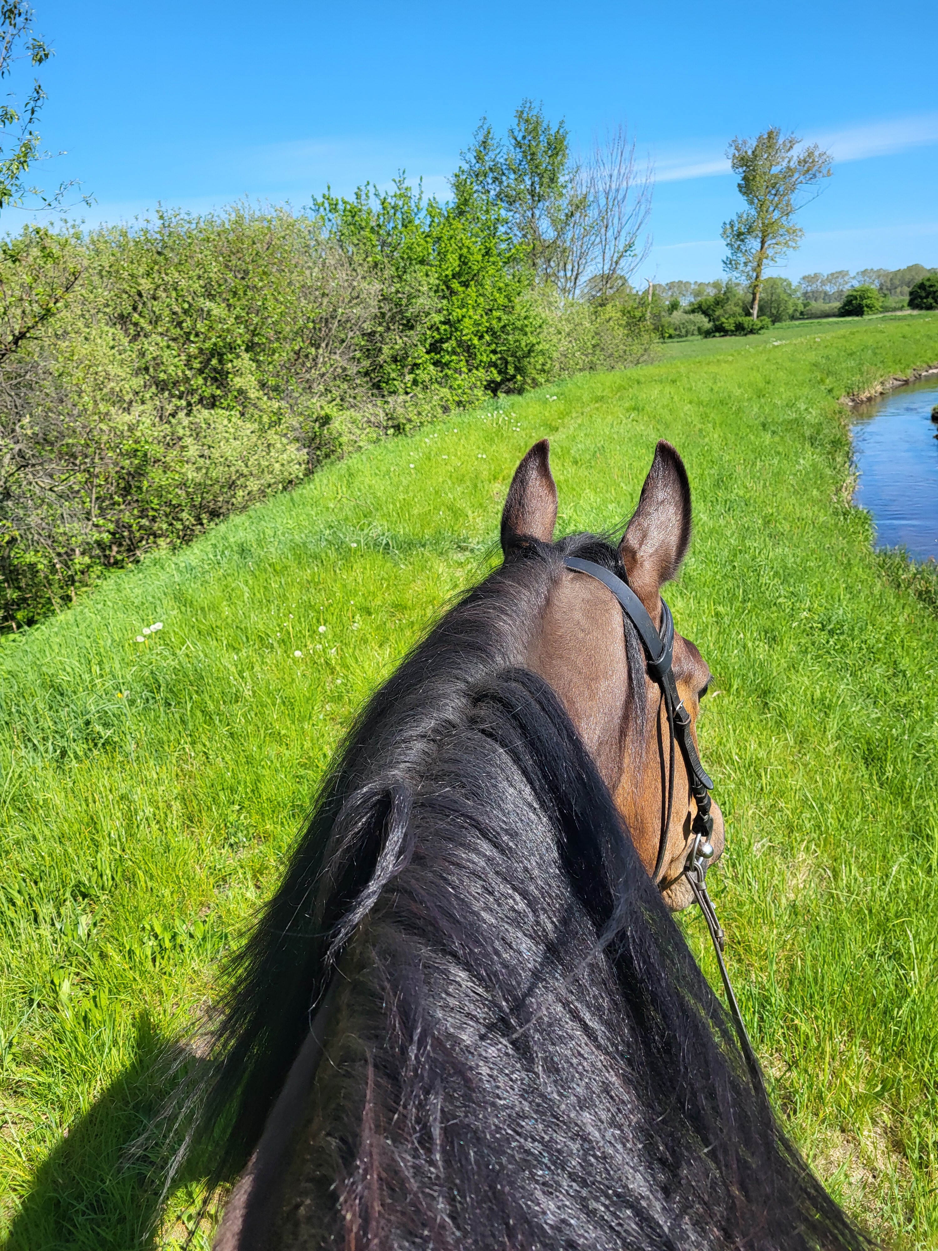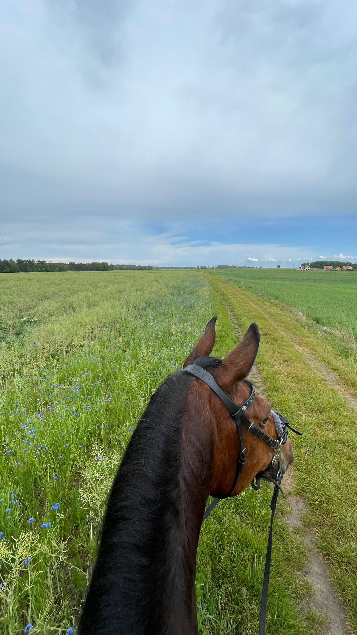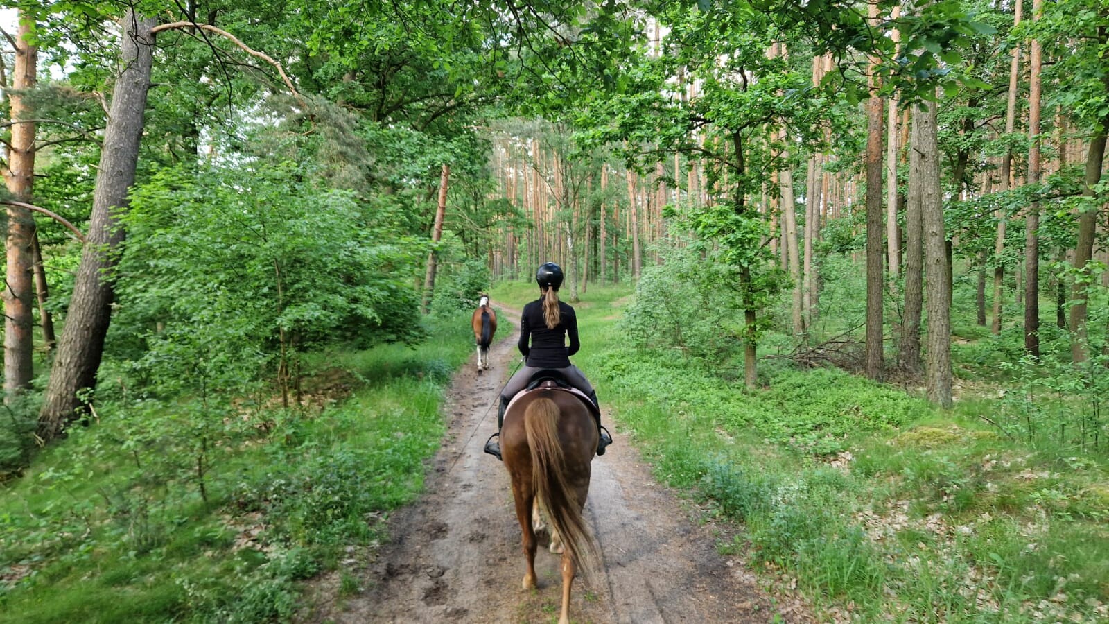 Teren na koniu, na którego dwa miesiące temu nie dało się wsiąść ♡ dumna z niej jestem niesamowicie, zwłaszcza że sama wyszła na czołową i cały teren przeszła spokojnie, na całkowicie luźnej wodzy.