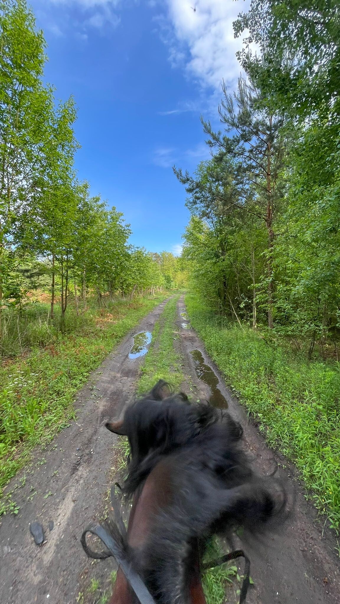 A ja wpadam do lasu... i jak wpadam, tak szybko wypadam - tyle robactwa, że wg mojego konia to walka na śmierć i życie🤣😂