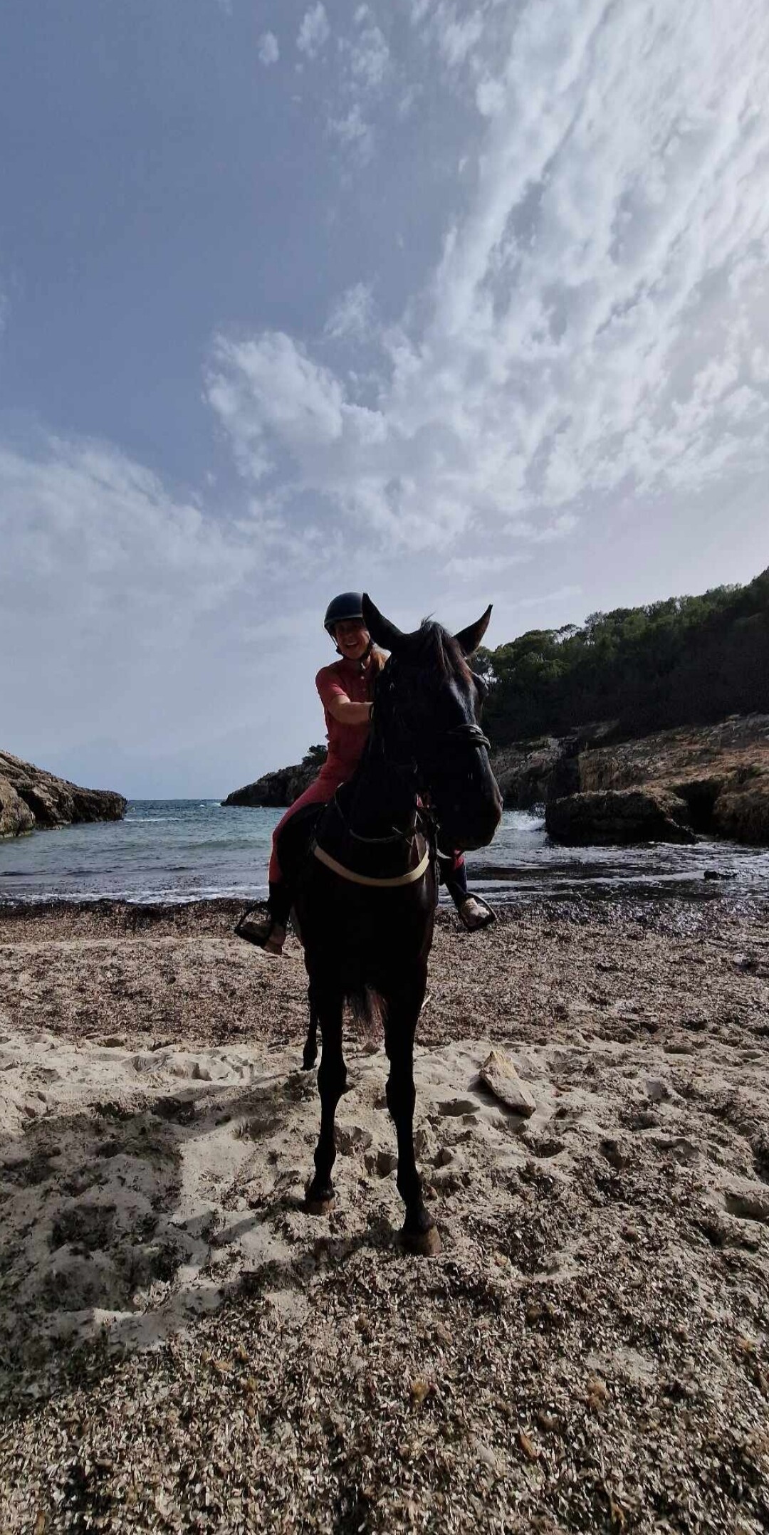 A ja wczoraj tak, cala Fustam na przepięknej klaczy Pura Raza Menorquina. Nie powiem, zaczęło mnie cisnąć znowu żeby kupić podobny egzemplarz, bo były ku temu zakusy jak się rozglądałam za koniem ale to były czasy pandemii i skomplikowany transport na półwysep. Wielkie te kobyły, wszystkie kare i świetnie się ruszają. Niestety nie udało się wejść do morza bo fale okropne i algi wywaliło na brzeg, ale zapamiętam sobie miejscówkę i wbijam następnym razem.