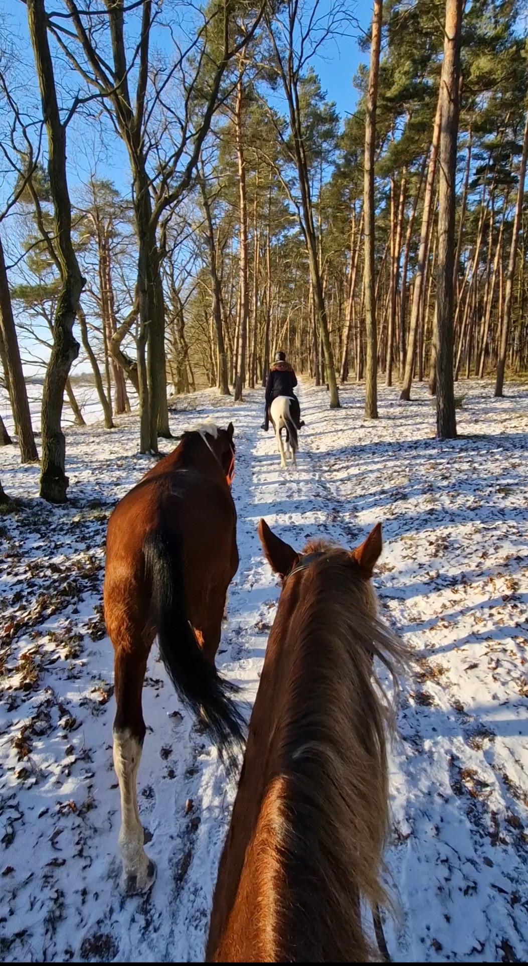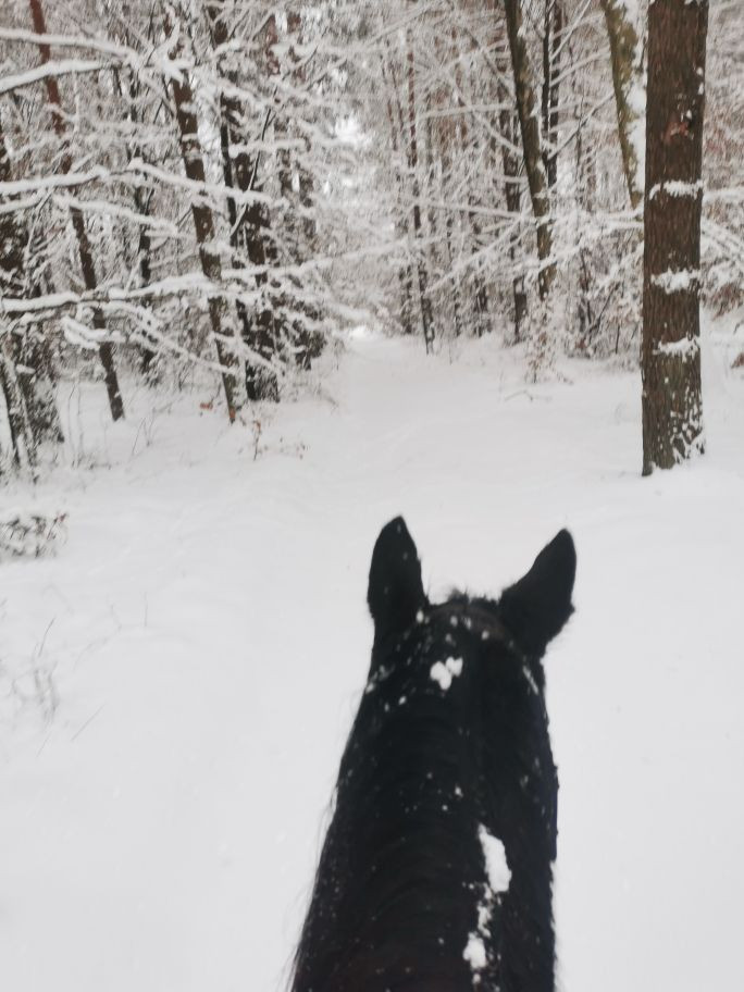 U mnie ostatnio co prawda bez dłuższych tras, bo pogoda jest taka, że strach się oddalić od stajni, ale jeździmy na małe pętelki po 10km i korzystamy ile się da 🤠