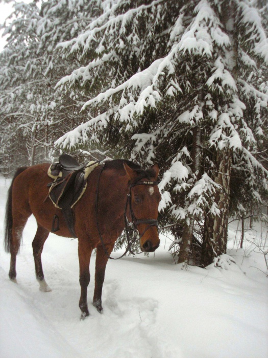 Od wczoraj napadało tyyyle śniegu, że jeździć można tylko drogami po których przejechał samochód. Bo inaczej koń zapada się. Kurczę...z pół metra spadło? Jakoś tak. 🤔