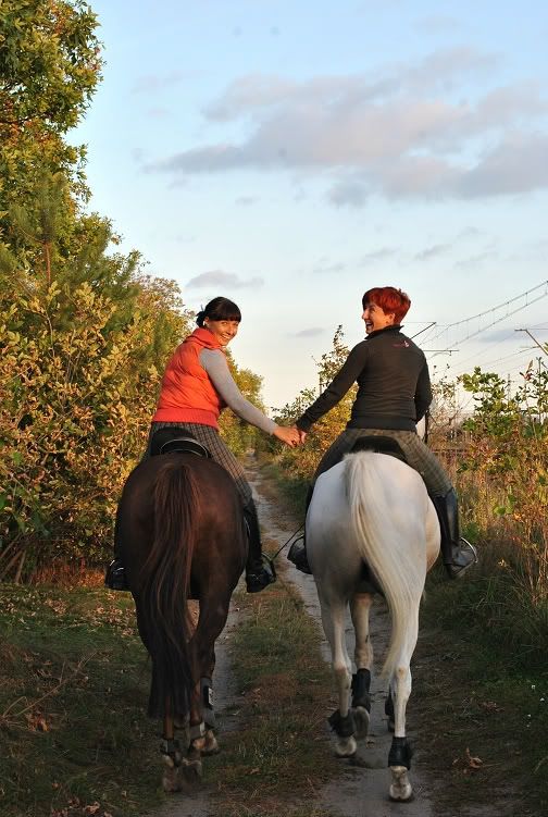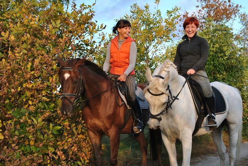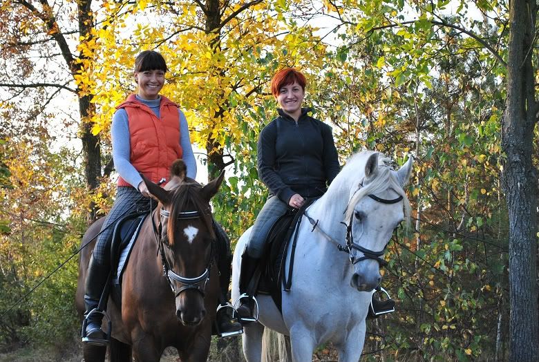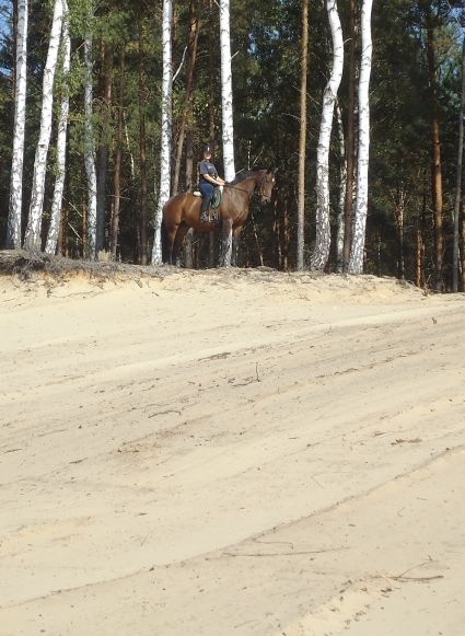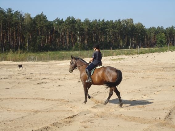 palemka, jest duża różnica, kolorek idealny do tej pory roku, moja hanowerka też dostała na jesień czekoladowy czaprak HKM, trochę niedbale go założyłam, ale muchy nam przeszkadzały. Moja klacz ma dopiero 5 lat, pod siodłem chodzi drugi sezon, a na wędzidle pierwszy, więc dopiero się uczy, jednak w terenie jest wspaniała ... nic jej nie rusza. Ale nie wiem, jakby zareagowała na krowy, jeszcze nie miałam okazji się o tym przekonać. Są u nas we wsi byki, ale tam nie można jeździć konno. Zaliczyłyśmy za to bliskie spotkanie z dzikiem, koziołkiem, stadem jeleni ... traktorem, samochodem strażackim w akcji i obyło się bez większych nerwów. Klacz jedynie pokazywała mi swoim zachowaniem, że dzieje się coś ekscytującego, zatrzymywała się żeby popatrzeć i czekała na moje sygnały. Jedynie dzik ją trochę przestraszył, bo nagle wyskoczył na leśną drogę, tuż za nami, ale po zrywie i kilku szybszych krokach, stanęła aby zbadać stracha, po którym nie było już śladu. Myślę, że czuła jego zapach, który pewnie zna, bo dziki często odwiedzają nasze łąki. Uwielbiam nasze wyjazdy w teren 😀 zawsze dzieje się coś ciekawego.