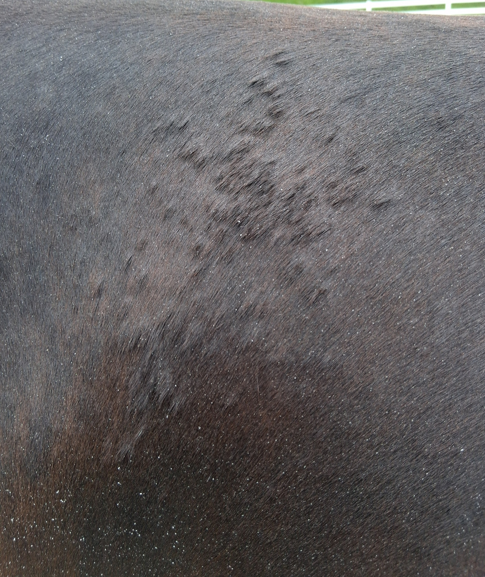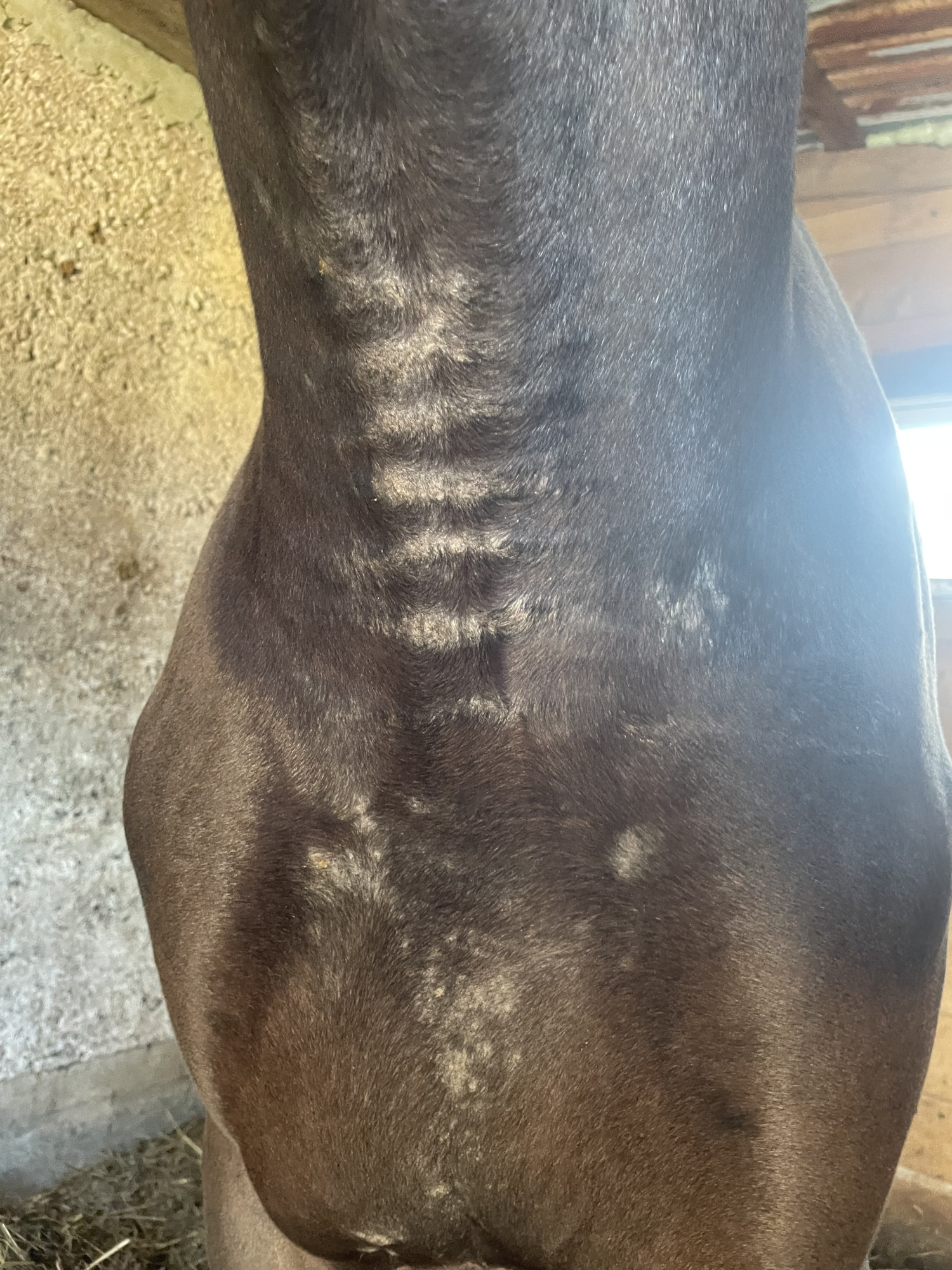 Hej, ostatnio zauważyłam na plecach konia taką zmianę (zdj poniżej). Wie ktoś może co to jest I jak to można leczyć?
