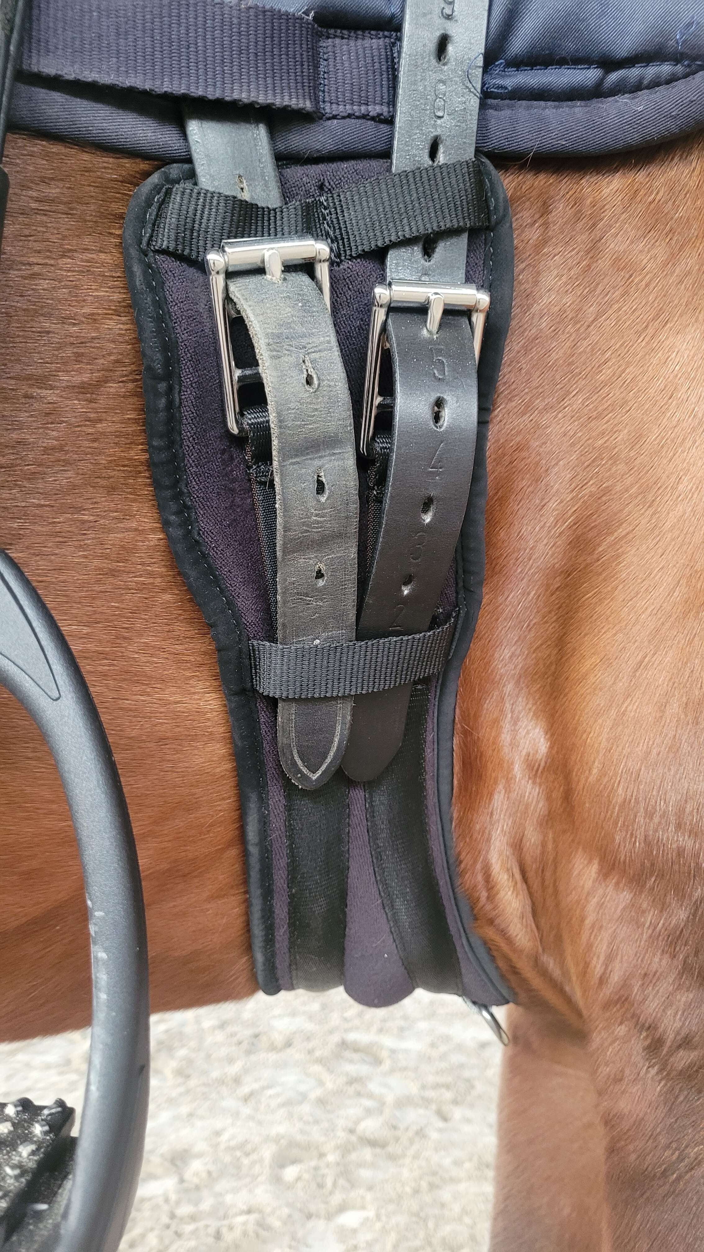 Pierwsze pytanie- jak to mierzyć? Obecnie mamy skórzany 60cm, zapinamy na 4 dziurkę z obu stron, czasem po rozgrzewce wskoczy 5 dziurka- popręg nie wchodzi nam na czaprak, ma już swoje lata więc gumy prawdopodobnie są już trochę rozciągnięte- krótszy raczej na pewno odpada, dlatego rozważam ewentualnie dłuższy. Problem jest taki, że crescent jest wycięty i musi być dobrze dopasowany, a że są to produkty na zamówienie- nie ma wymian ani zwrotów.. No i według producenta lepszy jest dłuższy niż krótszy. Czy macie jakieś tipy jak to prawidłowo zmierzyć, żeby wycięcia wypadały tam gdzie powinny? Jak to wygląda u was- poratuje ktoś zdjęciami (miło byłoby zobaczyć nie tylko ze względu na dopasowanie ale też kolor, bo mam dylemat 🙈😉?