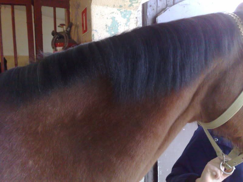 Sama tak tnę mojego. I, mimo że grzywy nigdy nie przerywam, a właśnie obcinam "od linijki" , zawsze na zawody ujeżdżeniowe robię koreczki. Fakt, że mistrzem świata w sztuce fryzjerskiej nie jestem, i raz wyglądają lepiej, raz gorzej, ale w miarę mojego doświadczenia coraz lepiej, to nigdy nie miałam problemu żeby je zapleść, mimo że grzywa właśnie taka.