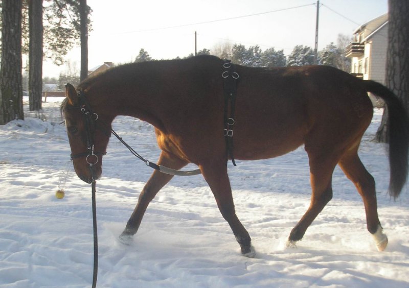 Wrzucę linki do jabłka i marchewki, ale tu już nie schodził tak fajnie jak na poprzednim zdjęciu. Poza tym ciężko lonżować, pilnować marchewki i jeszcze robić fotki. 😉 Ale naprawdę pomogło. Może to jest i głupie, ale troszkę pomogło.