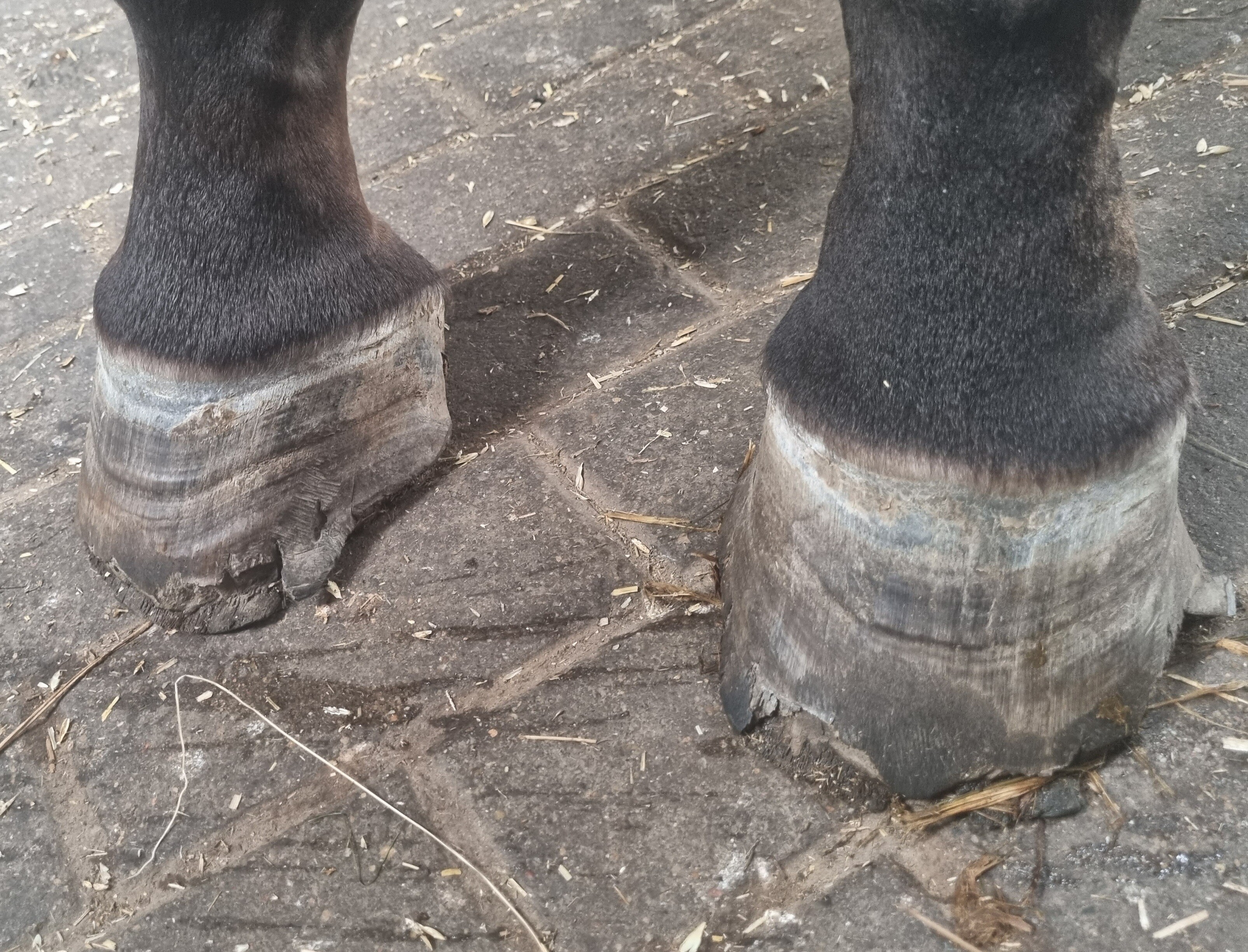 Myślę, że problemem tych kopyt niekoniecznie jest żywienie (pomimo obrączek). Chyba, że miewasz zapleśniałe siano raz na jakiś czas- tak by to wyglądało.