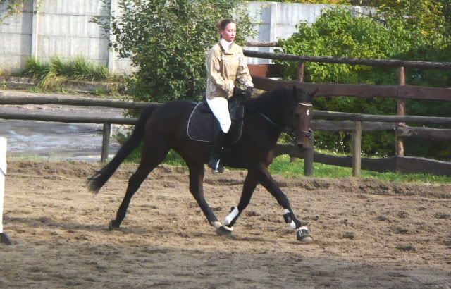 Mam nadzieję że przyszła dresażystka, ale czas pokaże, bo jak na razie zwalona na przód, przebudowany zad, wklęsły grzbiet i za wcześnie poszła do roboty, ale to wtedy nie zależało ode mnie, zresztą zostałam wprowadzona w błąd co do jej wieku, długa historia, mniejsza z tym.
