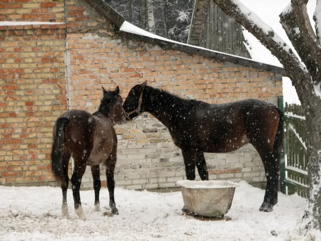 kujka - blondi na czas późnej jesieni i zimy jest roztrenowana. Z prostego powodu: chodzę do liceum i kończę o takich godzinach, że jeżdżę całkiem po ciemku (nie mam nawet żadnej lampy). Gniada jest odważniejsza i bardziej zrównoważona, więc możemy jeździć sobie przy blasku księżyca - natomiast z blondi po zachodzie słońca możemy conajwyżej zrobić sobie poważną krzywdę (nie wspominając już, że na koniu spetryfikowanym ze strachu nie za dużo ciekawych rzeczy da się zrobić 😁 ). Mogłabym jeździć w weekendy, ale nie ma sensu jeździć z doskoku na tak wrażliwym koniu. Roztrenowałam ją więc - z pozytywnym końcowym wrażeniem bo już naprawdę miło się robiło - i teraz zajmuje się chodzeniem po pastwisku 😉 Pewnie gdzieś w okolicach lutego znowu zdążę przed zmrokiem 😉