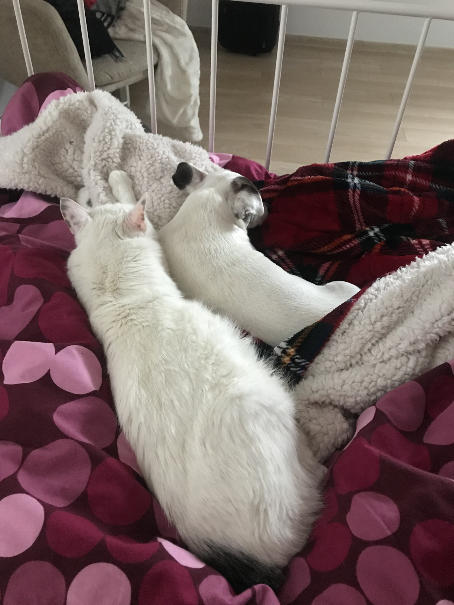 Chcę się zorientować ile dać czasu kicikoci, ale też obserwować czy za długo to nie będzie trwało i kiedy zacząć się martwić. Jej psia przyjaciółka odeszła trzy dni temu, po 9 latach i był to jedyny pies w naszym domu z którym się przyjaźniła i znała ją odkąd się urodziła, pozostałe toleruje. Od dwóch dni non stop śpi, zmieniła sypialnie i śpi z moją mamą pierwszy raz w swoim życiu, do mojej sypialni tylko zagląda (spała u mnie w łóżku z psami) i posiedzi w oknie. Kot prawie bezdźwięczny, sporadycznie stęknęła cicho bo to nawet nie miauczy, tak teraz drze się do mnie i oprowadza po całym domu w przerwie między spaniem a siedzeniem przy psiej misce. Była przy pożegnaniu z psiakiem w domu.