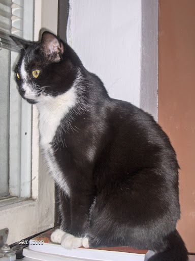 baba_jaga, kocurek ma rok-dwa lata. jest bardzo miły i ladny, przytulak starszny! ma krawacik i plamke na ogonie. mógłby egzystować z naszymi kotami biblioteczymi, ale jest nie wykastrowany i znaczy, jest nachalny i awanturuje sie gdy sie mu uwagi nie poswieca. "nasze" koty ktore mieszkaja w piwnicy, ale na czas otawrcia biblioteki przychodza, spia u nas i jedza sa spokojne. tamten znaczy, każe sie głaskac i je tyle co dwa pozostałe koty. poza tym jest strasznie miły, przystkich wita, pcha sie na kolana, mruczy jak traktor. chciałabym go komus oddac, troche robi problemow, poza tym kraży blisko drogi i boję się że ktos go potrąci. może ktoś wie coś na temat chetnych? dowiozę kota w warszawie!