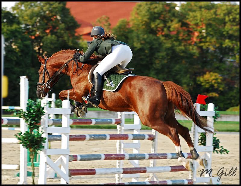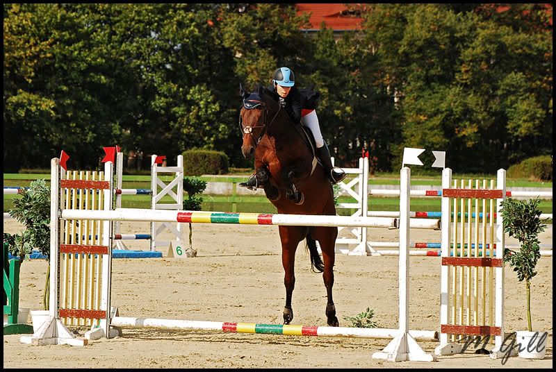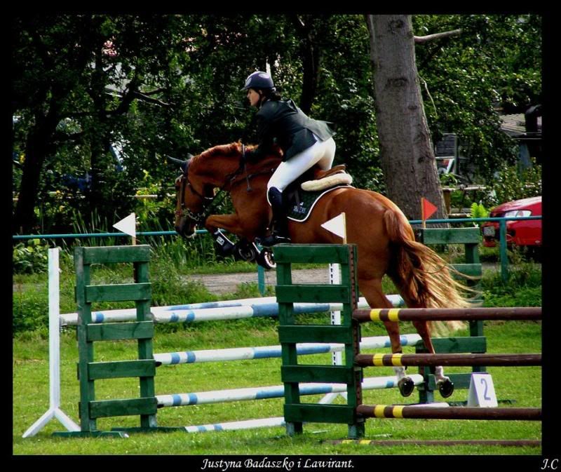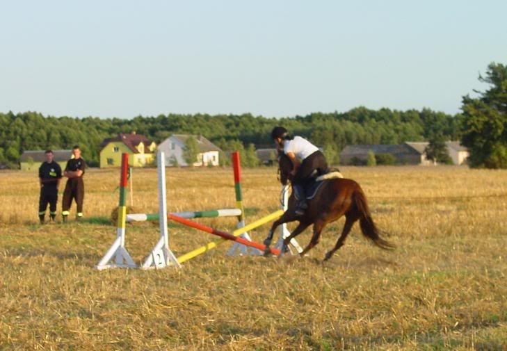 To my z wczoraj. Ruda, gdyby wchodziła o godzinę krócej do przyczepy, byłaby idealnym koniem jak na pierwsze wyjazdowe zawody. 🙂 Na rozprężalni troche swirowała z taśmami biało-czerwonymi, ale na parkurze był aniołek. Tylko włacza jej się wtedy zwalnianie tempa. Musimy poćwiczyc w domu. W rzeczywistosci wszystko było w pośpiechu, ale mamy nauczkę na przyszłosć. 🙂