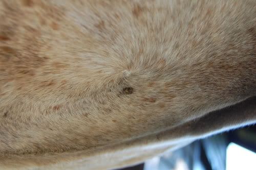 Największy sarkoid, który byl pierwszy: W pachwinie tylnej nogi: I początki dwóch małych: