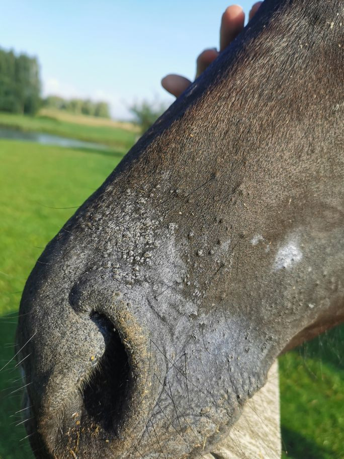 blacka, do tego pracuj z koniem żeby go przyzwyczajać do dotyku tam bo jak się pojawił sarkoid to lepiej działac a nie to zostawić. Wspieraj układ odpornościowy konia, żeby się to nie rozniosło.