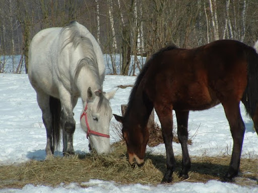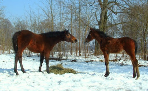 Karla🙂, konie zwiewają z boksów na wybieg, a jak się im znudzi, to potem zwiewają z wybiegu do stajni - znaczy mają się dobrze, bo chce im się kombinować. Zdrowe ( odpukać ). Te, które mają rosnąć - rosną. Do nowego domu przywykły.