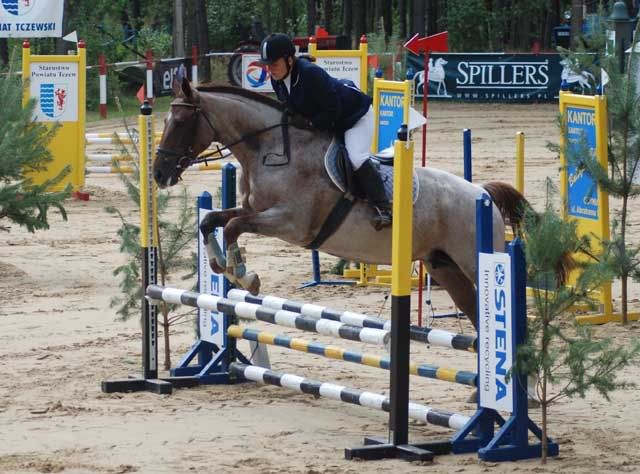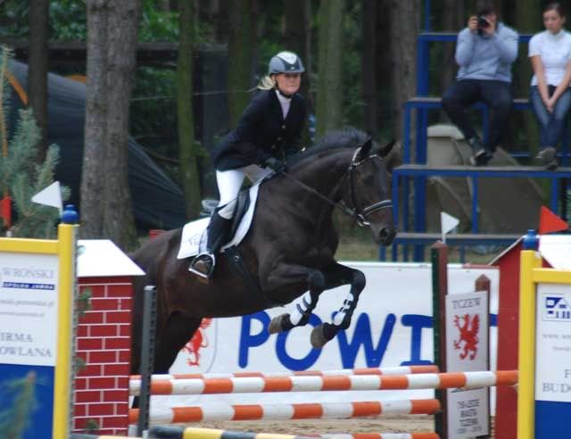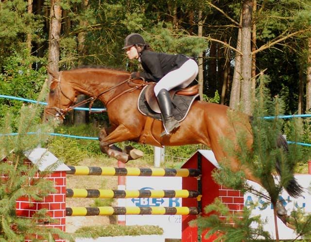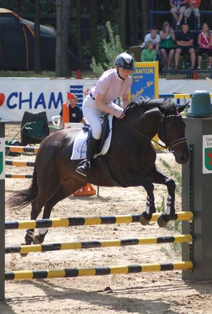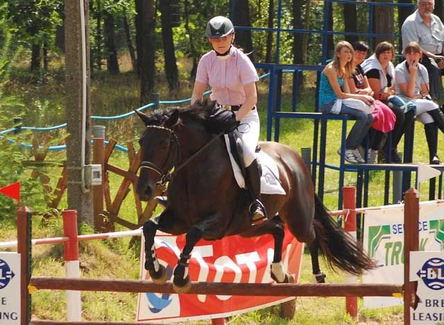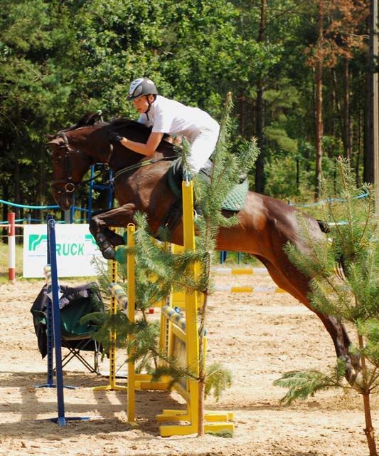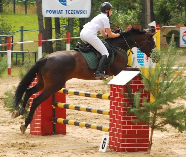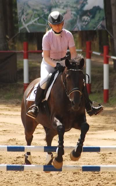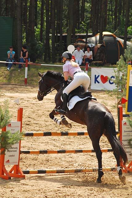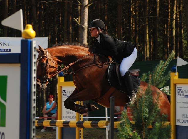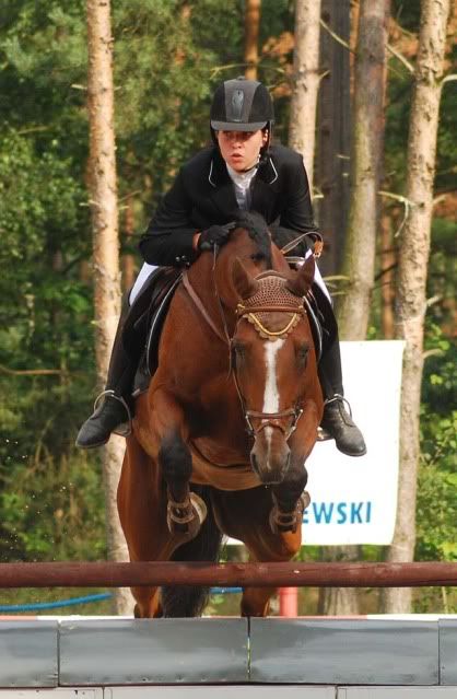 ja generalnie średnio zadowolona szczególnie dlatego, że po fotach widzę, że na zawodach panuje nad swoim ciałem zdecydowanie mniej niż w domu 🙁 Jeśli chodzi o konia to zachowywała się super. w sobote 13 w LL, w L jedna zrzutka w rozgrywce i małe nieporozumienie przy skrócie. zabrakło precyzji i było ciasno na skutek czego kobyła chciała skakać przez stojak 😡 w niedziele zapomniałam w LL skoczyć 8 choć była dokladnie na mojej drodze to idealnie ją ominęłam jadąc dzielnie do 9 😡 W L moim zdaniem pomimo 1 zrzutki w rozgrywce dobry przejazd
