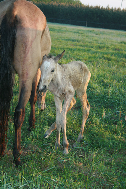 O włos. Wyźrebiła się najwcześniej około 2.00. Po wieczornych oględzinach obstawiałem, że wyźrebi się pewnie nad ranem - i nastawiłem budzik na 3.00. Rozminęliśmy się o godzinę, pewnie mniej...
