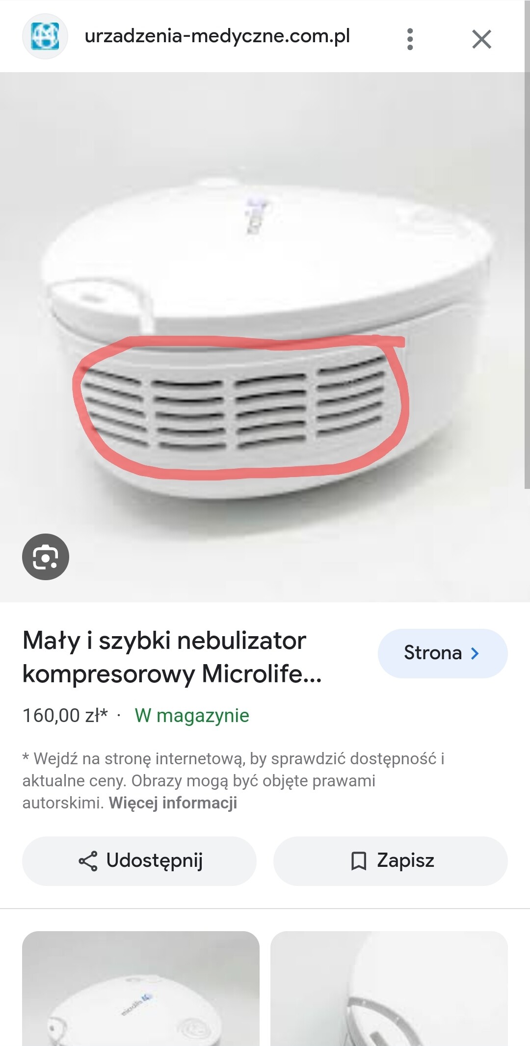 3. Czy przez wywietrzniki powinno być widać "bebechy"? Instrukcja mowi cos o wymianie filtra, i nie wiem czy chodzi o pojemniczek na lek, czy tam powinna byc jakas wkladka jak w odkurzaczu, a ja dostalam inhalator bez (kupiłam używany).