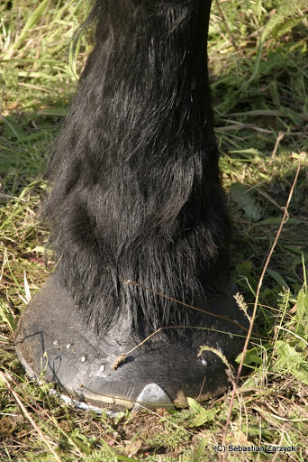 Piglet a mogłabyś zaznaczyć na czerwono te kliny, mam podejrzenia, pewnie jakbym mogła pomacać to bym wątpliwości nie miała, a tak tylko snuję domysły czy to "to" a przy okazji, znalazłam foto z wystawy hodowlanej. Okute kopyto perszerońskiego karego ogiera robi wrażenie!! Jest wielkości talerz płytkiego!!Ciekawe jak długo będzie do czego przybijać podkowy.