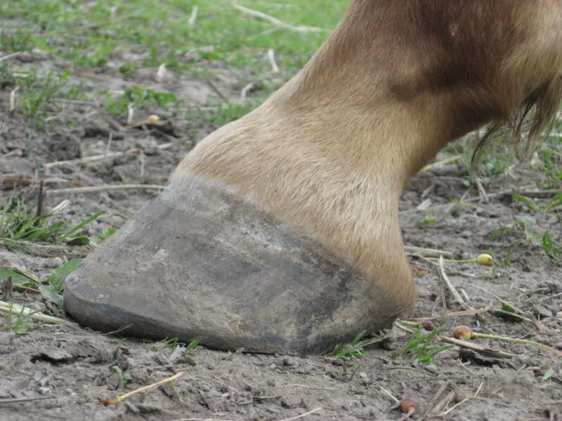 I mam rózne podejrzenia co do jego sposobu poruszania się, byc może kowal zbierał mu za dużo z podeszwy , a zostawiał kąty , które gniotły go jak miał za dużo z tyłu za mało z przodu wiec dlatego moze chodzic bardziej od palca niz bardzie od pietki. Ale za to jest z tych koni , którym kopyto regeneruje się szybko. Bo mimo wszystko nie miał przerostu tylu nad przodem.