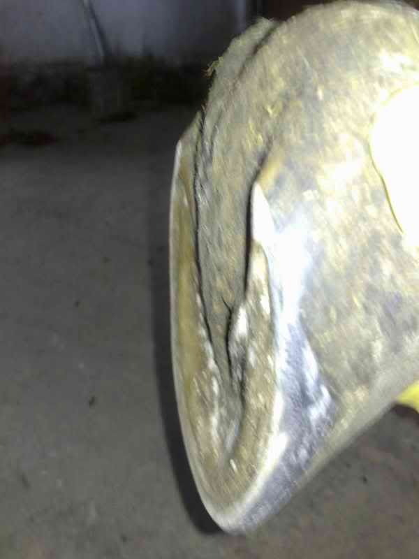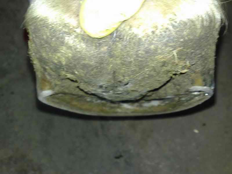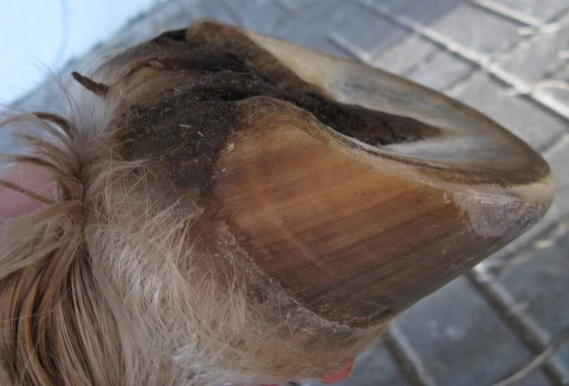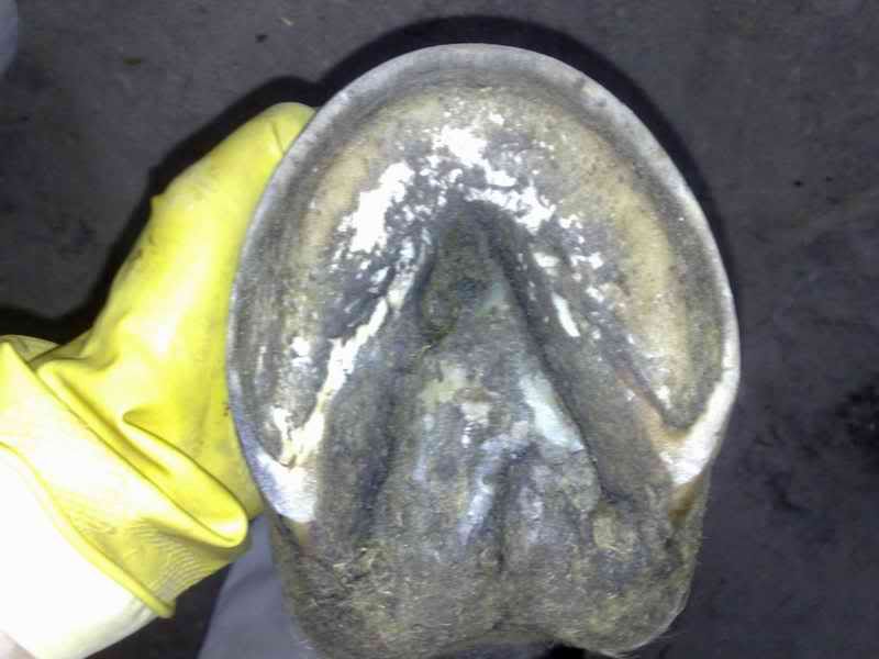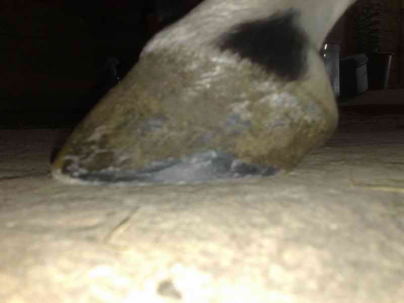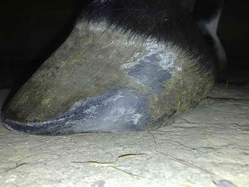 dobra udało się w końcu zrobić zdjęcia. sorry za jakość, ale dysponuję na razie tylko komórką. ogólnie - to dotyczy wszystkich kopyt - cały czas borykam się z przerwaniem linii białej i za cholerę nie mogę sobie z tym poradzić.
