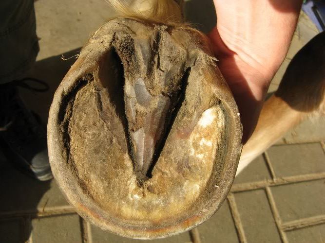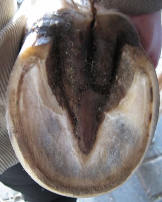zoyabea - no jest masakra :| niestety jak kopyto nie jest poprawne (strzałka nie jest stymulowana bo albo jest poza kontaktem z ziemią albo kontaktu tego nie może znieść i koń oszczędza ją chodząc od palca), to bez ciągłej troski infekcja rzuca się w mig... dlatego warto trochę powalczyć o idealne kopyto, które się będzie "samo broniło" (w Campiny tyłach już od jakiegoś czasu takie mam 😀 podchodzę ze strzykawą, czyszczę strzałki... no i nie ma gdzie się wbijać ani czego moczyć, żadnych wilgotnych frędzli. Oby tak dalej 🙂😉