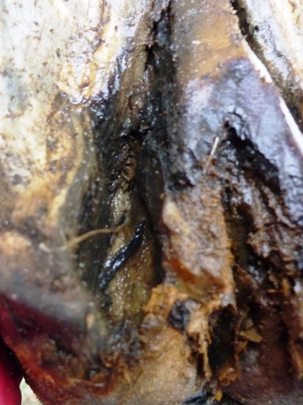 Kuleje, ale nie jakoś dramatycznie. Dziurę odkryłam pod koniec sierpnia, ale nie było widać jak wygląda. Dopiero zmiana warunków (łąki 24/24) i moczenie w armexie spowodowały że ta dziura się ukazała. Co to może być? Skostniała chrząstka? Strzałka gąbczasta? Ślad po ropniu? I jeszcze ta załamana ściana wsporowa?