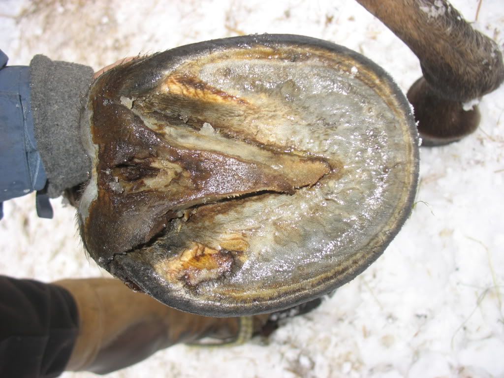 zgnilizna (i to głeboka) jest w strzałce na zdjęciach Isabelle ale to nie strzałka jest tu problemem, tylko ksztalt kopyta i to zacieśnienie...widac od razu, ze to kopyto nie działa, mechanizm kopyta tu nie funkcjonuje i strzałka jest "martwa" i dlatego gnije...jak coś jest "żywe" to nie gnije, gnije trup! w zdrowych kopytach z działającym mechanizmem, strzałki nie gniją i nie wymagają praktycznie żadnej pielęgnacji i wycinania...