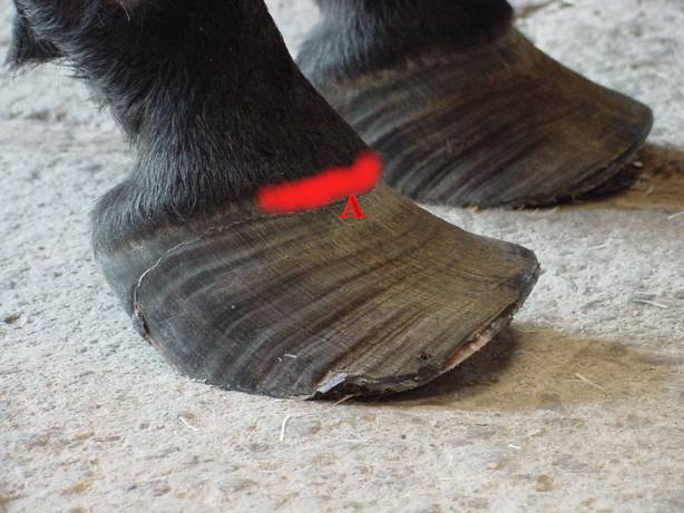 Ochwat "niekontrolowany", to oderwana ściana, której jednak jest tak dużo, że nie daje ona rady pokonać oporu i zrastać swobodnie w dół. Dlatego fałduje się, kompresuje tuż pod koronką. Na dodatek tył kopyta, również przerośnięty, jest bolesny, koń go nie obciąża tak jak powinien - wtedy powstaje klasyczne kopyto i ten "wachlarzowaty wzrost", o którym pisałam. Ilustracje - czy takie wystarczą, czy mam mazać po nich jeszcze?