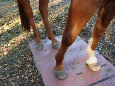 A jak już jestem przy wnioskach „historycznych”. W poszukiwaniu czegoś natknęłam si ę na zdjęcie, którego obiektem były nogi, dzięki czemu dokładnie widać kopyta. Ogarnęła mnie groza. Koń regularnie werkowany trybem stajennym, ja w w błogim spokoju, że wszystko jest O.K., skoro jest pod stałą opieką fachowca. Dlaczego ten fachowiec nigdy mi nie powiedział, ze częstotliwość nie jest taka, jaka powinna być? Zdjęcie wykonane było tuż przed moim kursem z Larsem Palo.