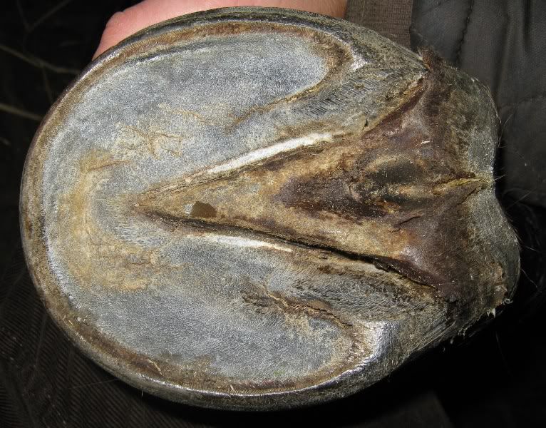 A oto to samo kopyto z wrzesnia, kiedy pietki byly nisko, strzalka byla zdrowa a sciany wsporowe byly rowne z podeszwa
