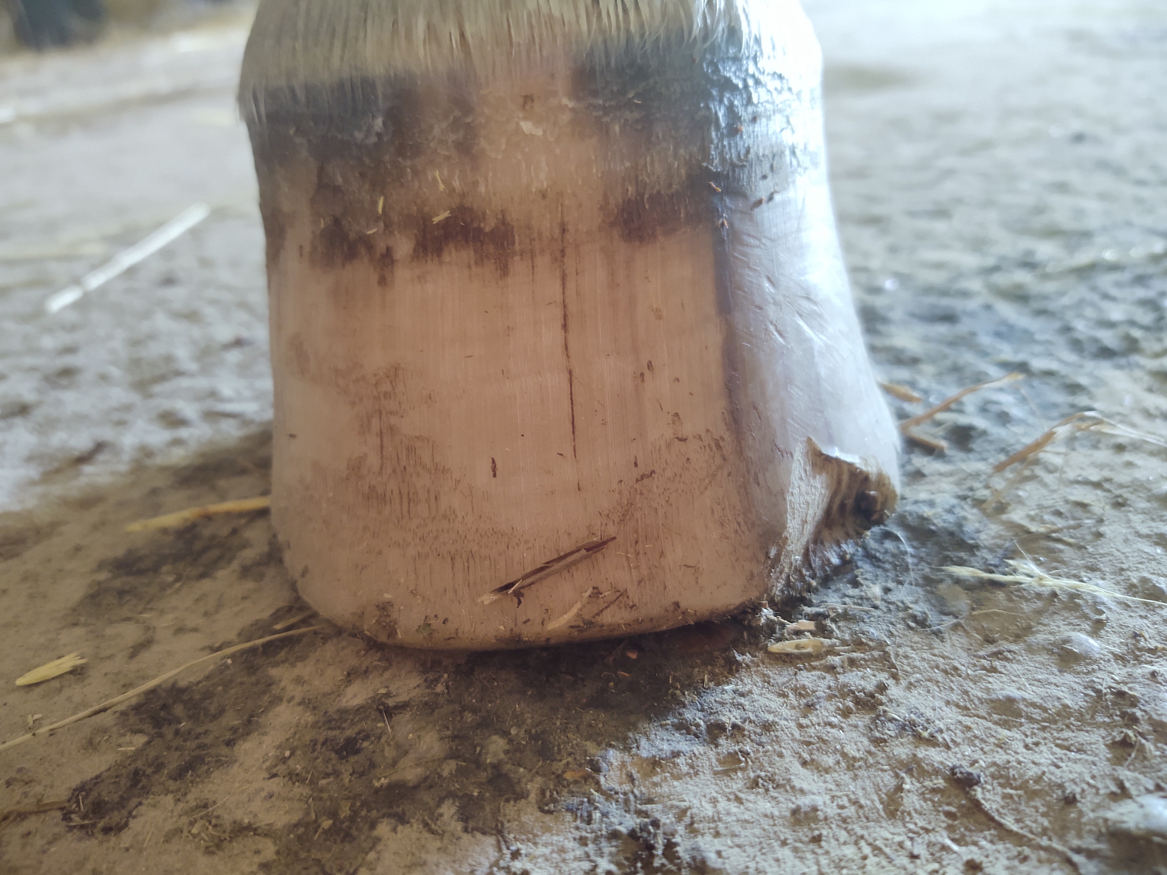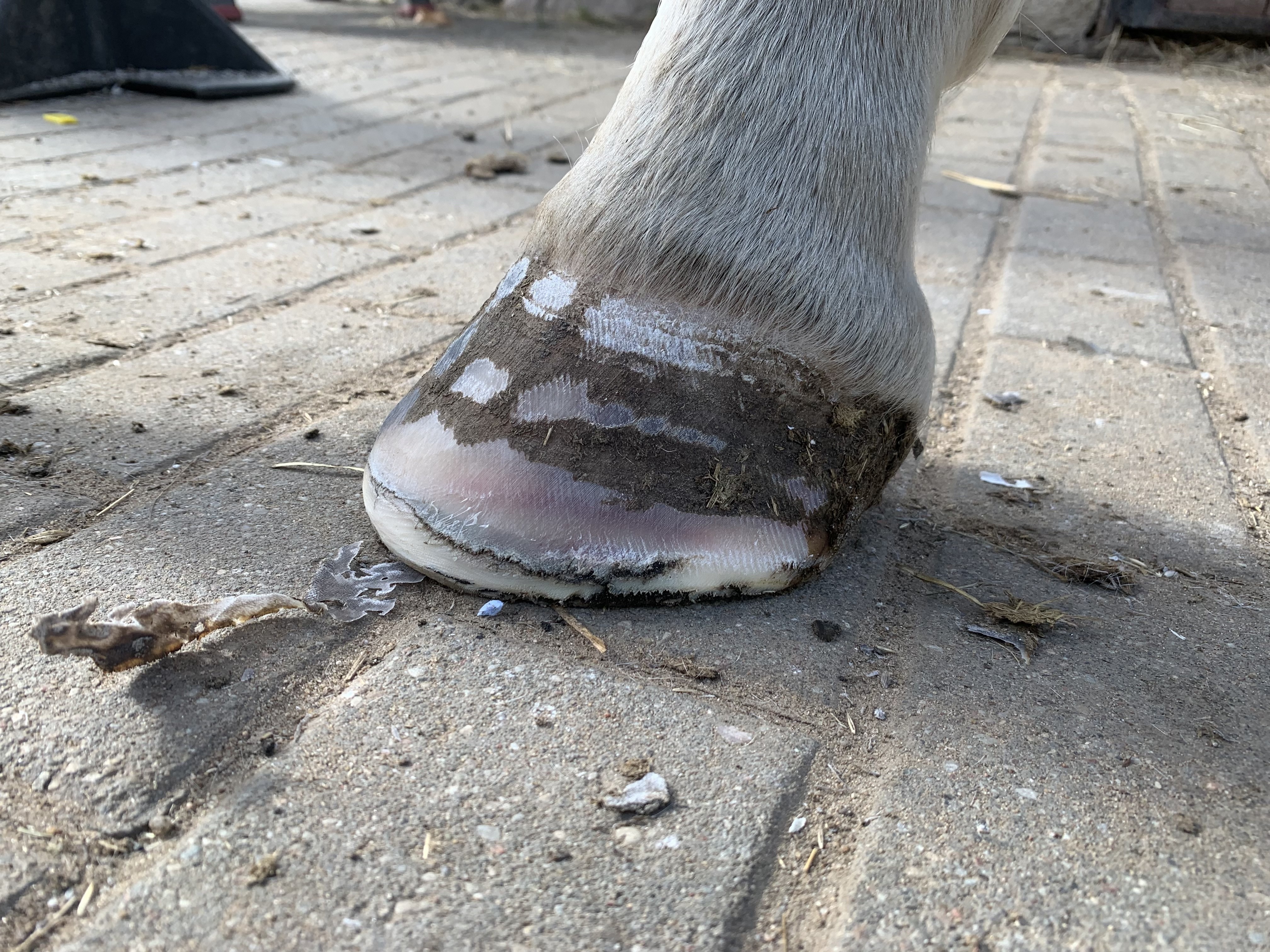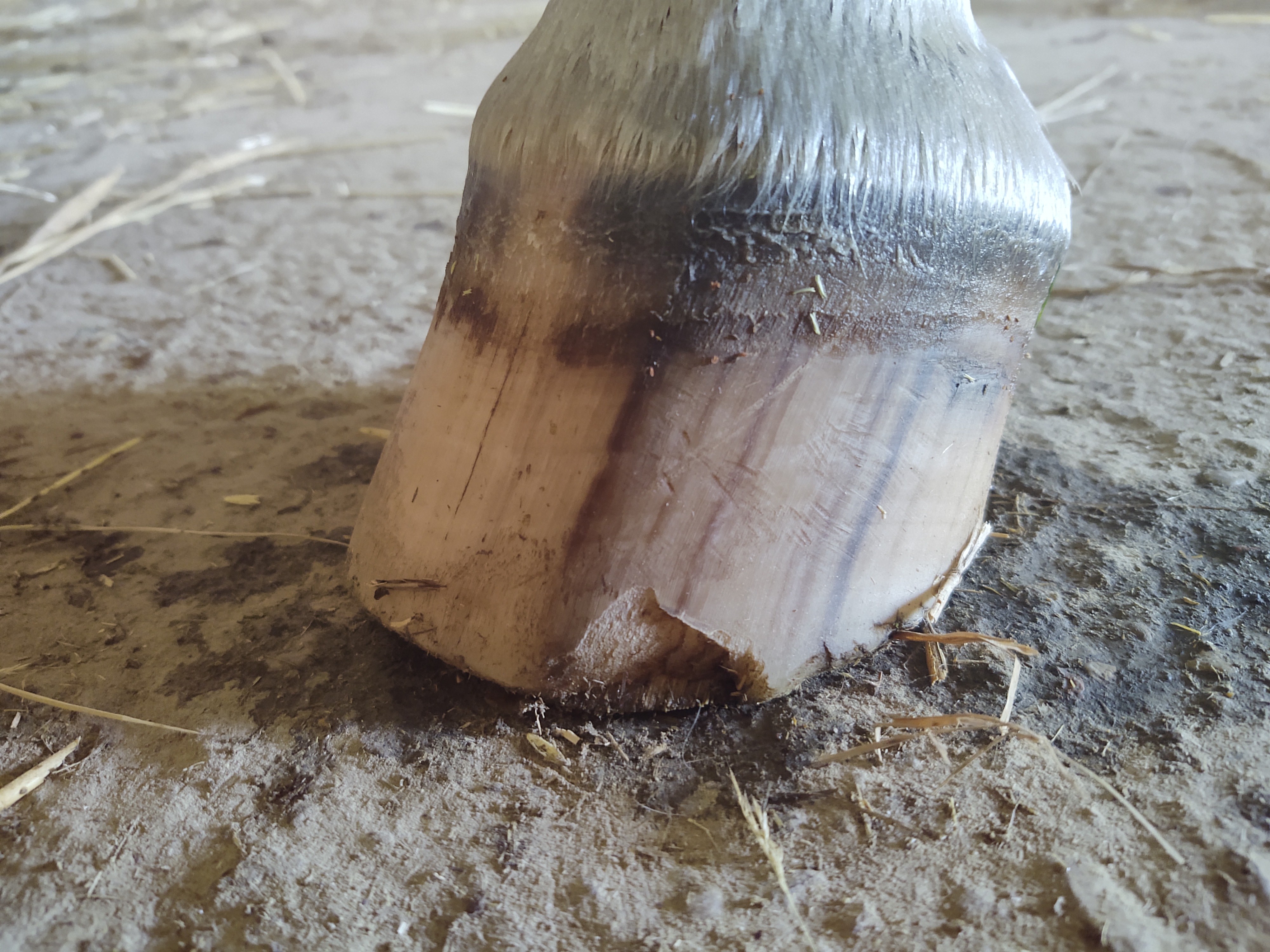 Koń nie kuleje, stało się to w terenie, spędza 15-20h dziennie na dworze, dostaje biotyne, krew w normie, kopyta nie wydają się jakoś mega suche, choć podłoże na padoku zamienia się w pustynię powoli.