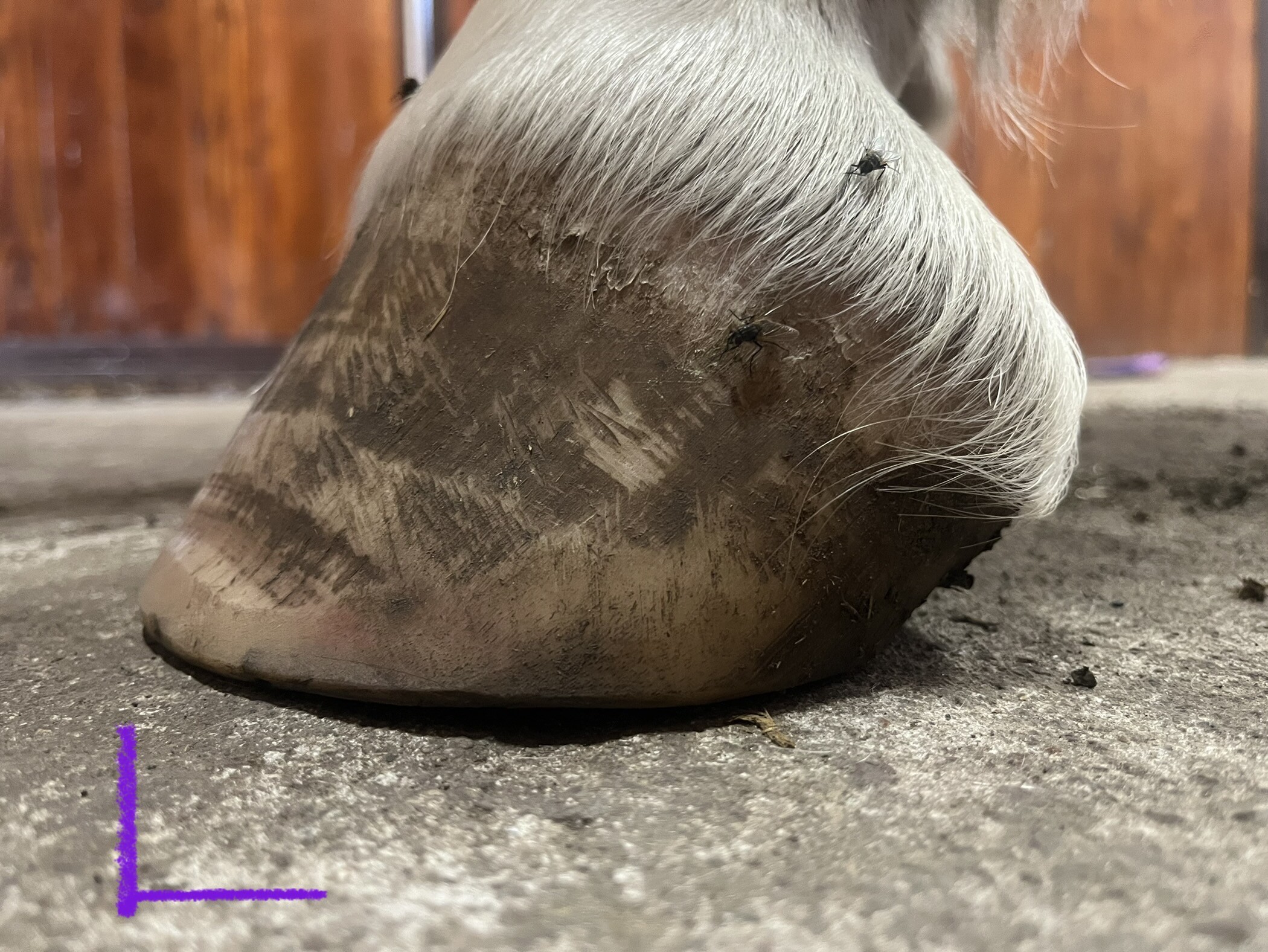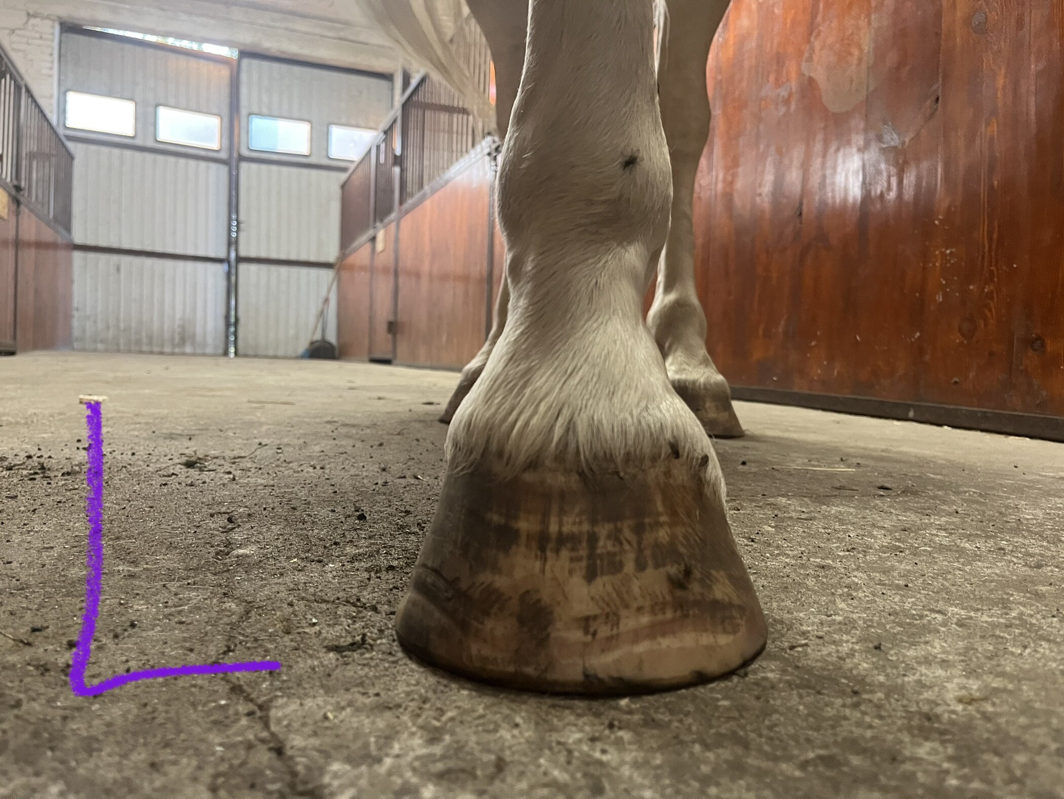 kotbury, nie do końca jestem w stanie sobie wyobrazić jak kopyto może być wyższe i niższe jednocześnie w tym samym miejscu. W sensie, że jest ściana przy ziemi bliżej środka kopyta niż przy koronce? Taka przekoszona?