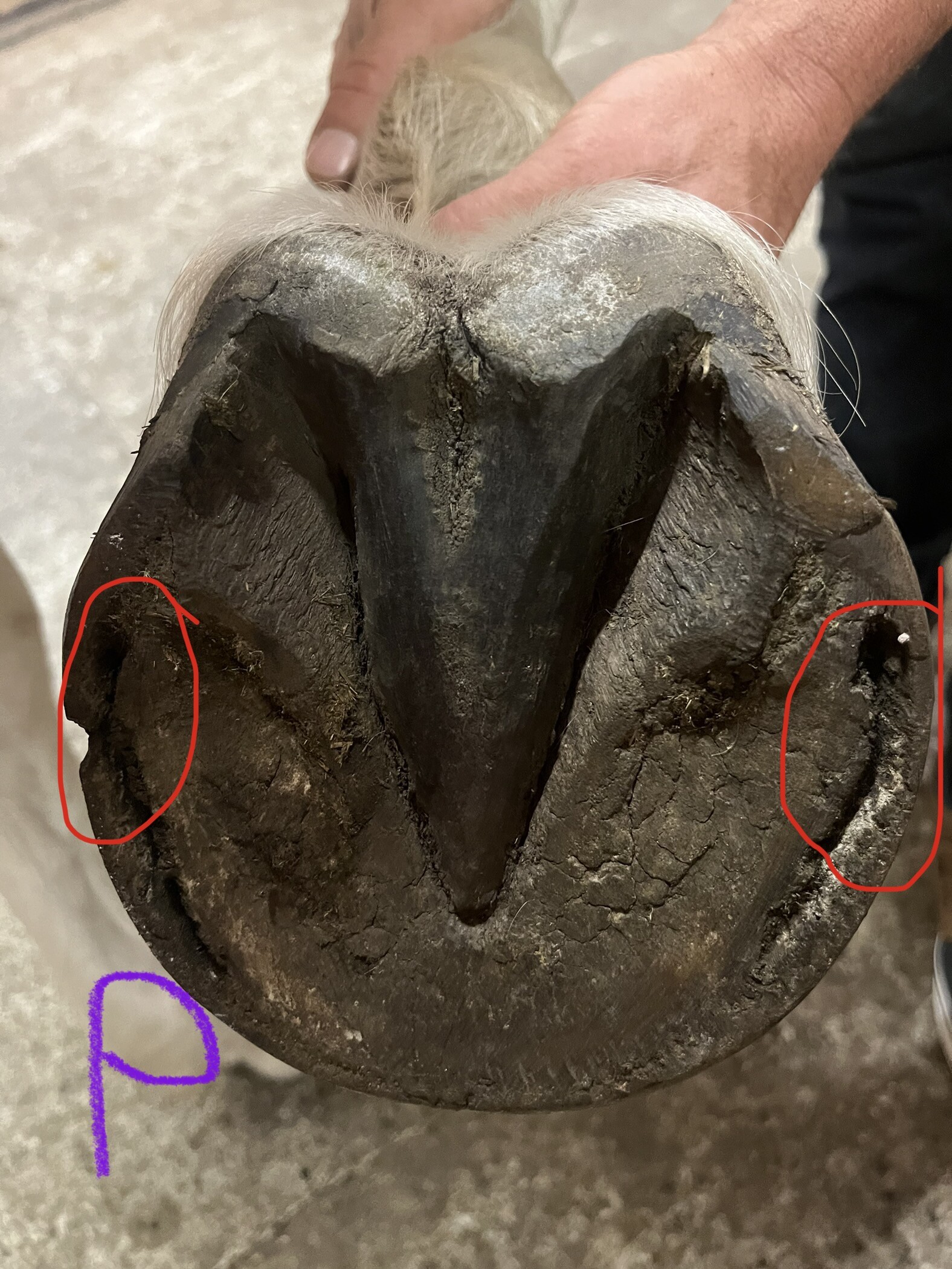 zembria, bardzo dziękuję! Laikiem jestem, czy chodzi o te miejsca zaznaczone na czerwono na zdjęciu ? Czy można ściąć do linii białej? Poproszę kowala i po zrobieniu kopyt (za 3-4 tygodnie, 3 dni temu miał robione), zmierzę i poszukam butów.