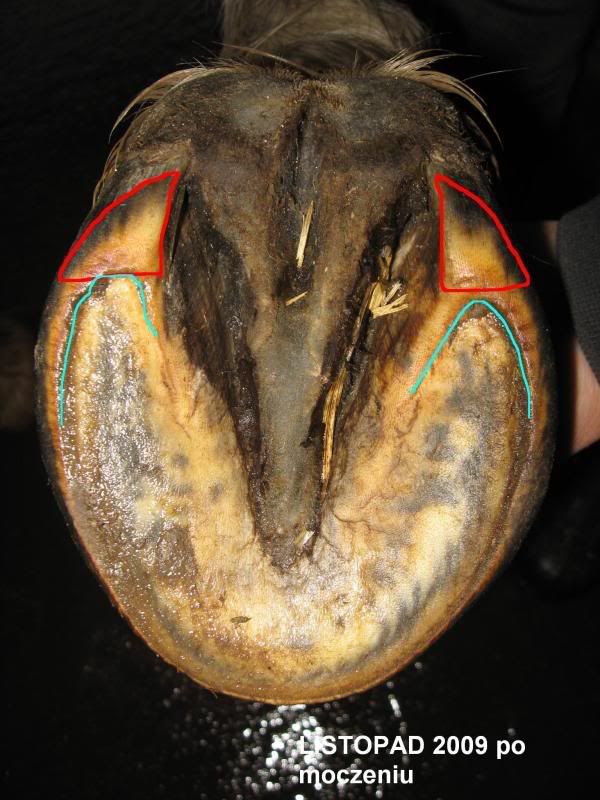 Może być tak, że przez działanie kowala który mocno wybierał podeszwę działa jakby "nadprodukcja" która nadrabia braki robione przez kowala? Jak długo taki stan może trwać? Mam pytanie dotyczące strzałek na których robią się mniej więcej po środku raczej bliżej grota krwiaki, gdyż zabrakło podparcia na ścianach, koń mocno opiera się na strzałkach co powinno sie w takiej sytuacji robić? wyciąć nadmiar strzałki czy raczej poczekać na na odbudowanie ścian - czy jeśli dopuści się do odrośnięcia ścian nie zaczną się wyłamywać? Zaznaczę że ściany zostały spiłowane do wysokości podeszwy a ściany przedkątne maja zrobione łuczki - strzałka ma krwiaki mniej więcej na wysokości ścian przedkątnych i lekko powyżej w stronę grota.