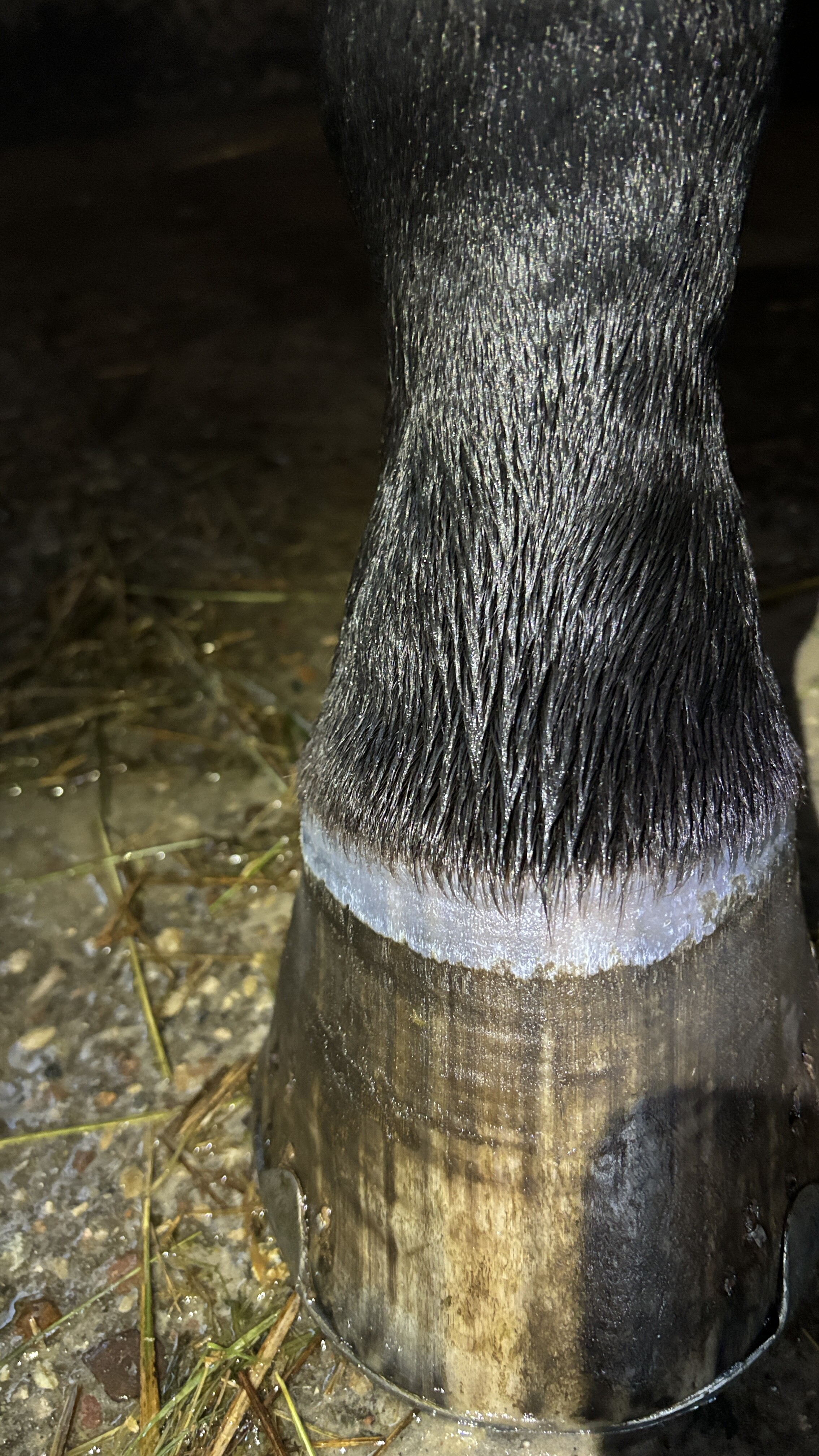 Koń był kuty w zasadzie całe swoje życie i po rozkuciu okazało się, że strzałka wyprzedziła ściany kopyta.