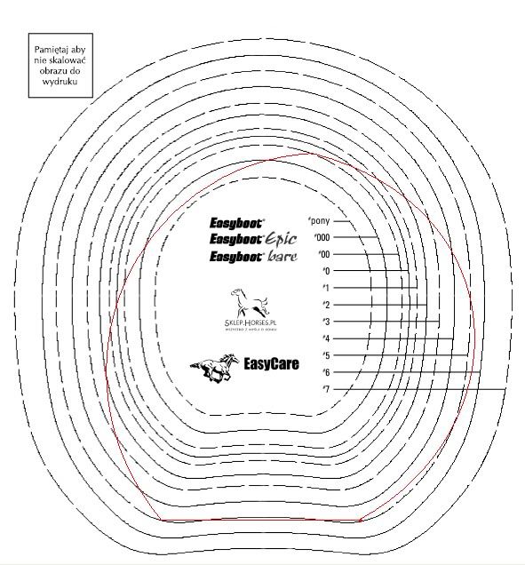 Orzeszkowa - zrób inaczej. Weź kartkę grubą i postaw na niej kopyto. I dokładnie odrysuj. Potem to wytnij i porównaj do wydrukowanych szablonów butów. I weź ten model który lepiej pasuje. Epici to lepsze buty moim zdaniem niż Cavallo - ale pamietaj, że będziesz na nie czekać miesiąc jak nie dłużej... a cavallo dostaniesz w kilka dni..