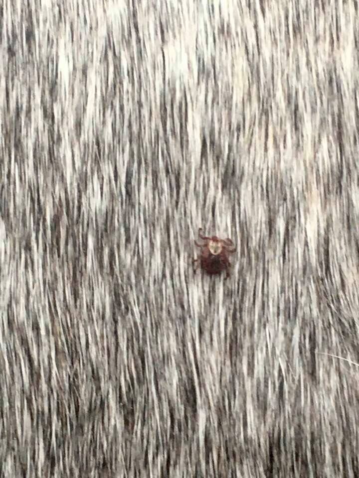 Dzisiaj wyjęłam z grzywy przy kłębie tego dużego paskuda kleszcza ze wzorkiem. Niestety w tej okolicy też dwa spore strupy znalazłam.